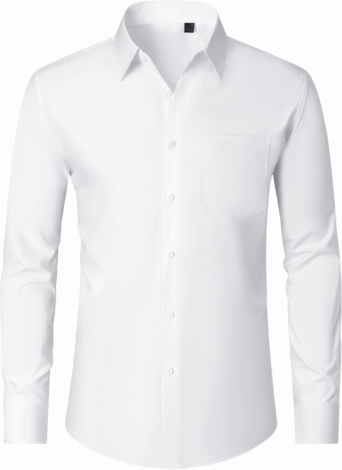 J.VER Men’s Dress Shirts Wrinkle Free Long Sleeve Formal Shirt Solid Business Casual Button Down Shirts for Wedding Prom
