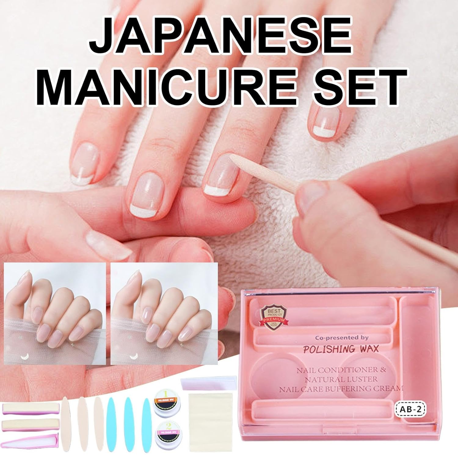 Effortless Manicure Process: Perfect your nails easily through a 3-step approach, complete with polishing tools and wax, designed for easy yet effective use