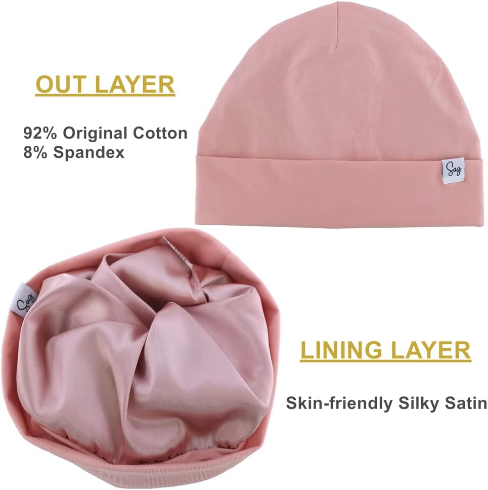 Why Lined with Silky Satin: The Lining of our beanie is high quality stretch Satin. Unlike other fabric, which absorbs moisture from hair and skin, satin is silky smooth, repels moisture, and promotes maintenance of healthy hair. The Out Layer is natural fiber fabrics like Cotton/Spandex, Ribbed Knitting,ensuring they are soft, flexible, skin-friendly and durable.