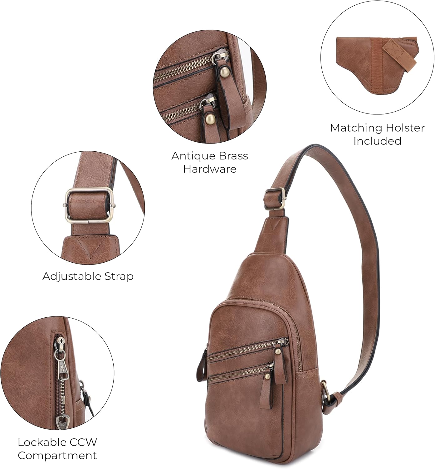 SPACIOUS INTERIOR: Measuring approximately 7.5″ wide x 12.5″ tall x 3.5″ deep our concealment shoulder bag has a main compartment big enough for your essentials. There is 1 main compartment with an interior slip pocket and zipper pocket. There are also 2 exteriour front pockets. Easily stash makeup, your cell phone, keys or whatever else you may need.