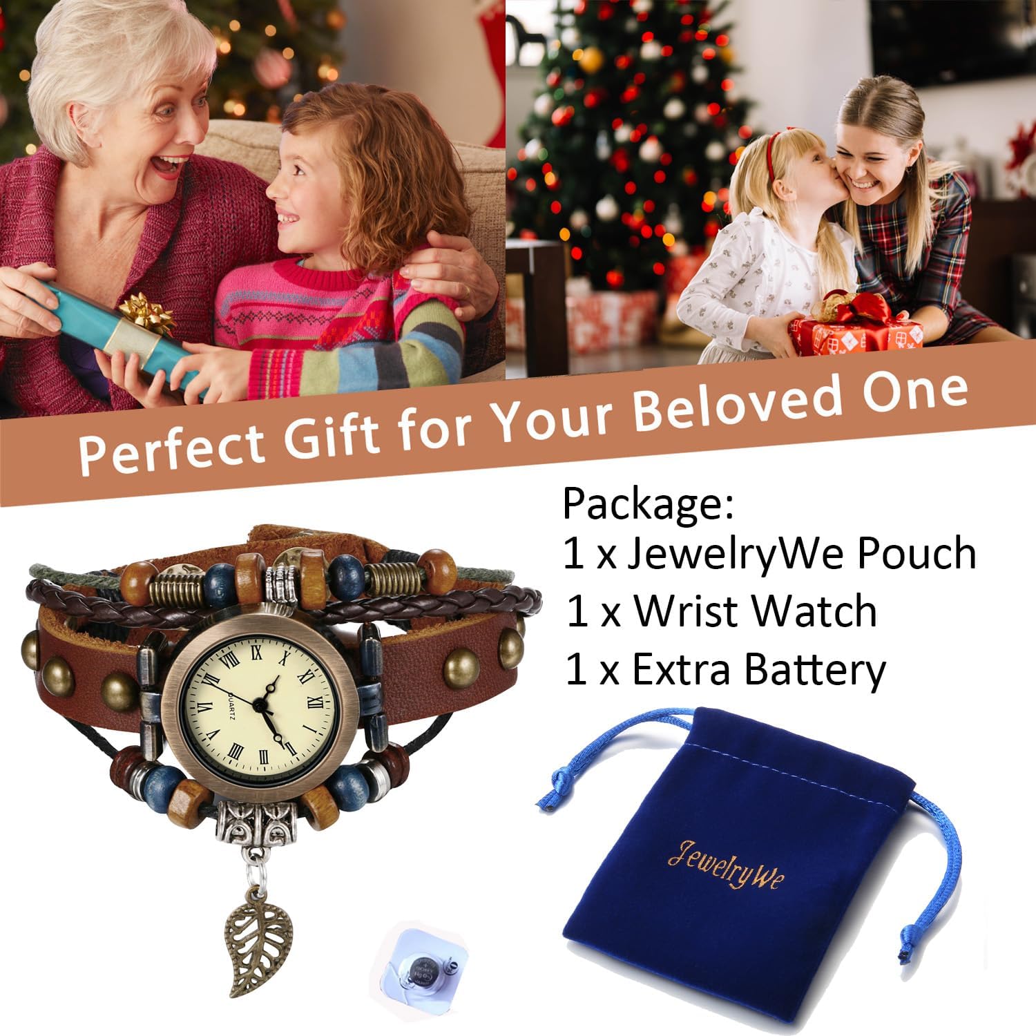 JewelryWe Women Quartz Bracelet Watch Fashion Weave Wrap Around Leather Wrist Watch Classic Bracelet Watch for Summer Beach for Christmas