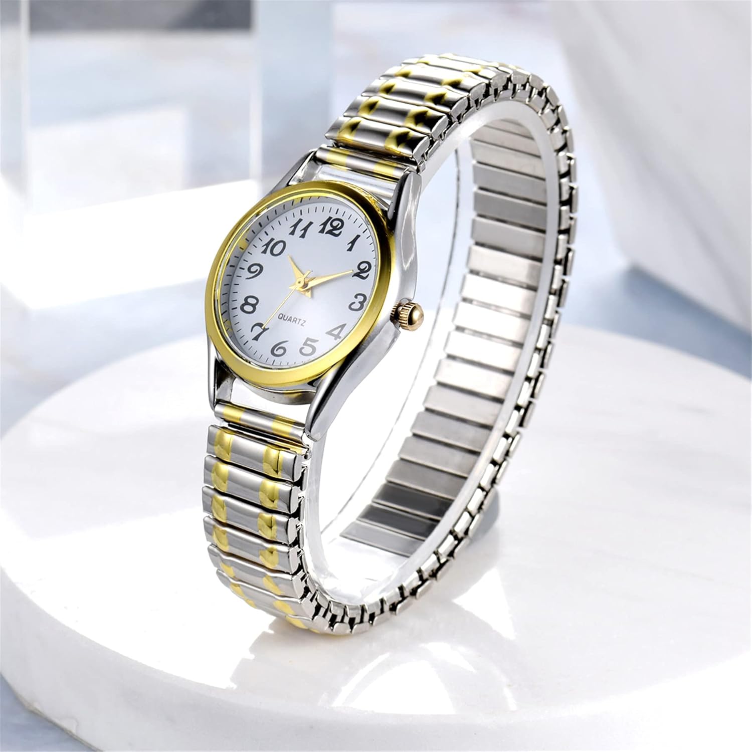 JewelryWe Women’s Ultra Thin Easy Reader Watch with Elastic Strap Golden/Silver Tone Stretch Band Watches for Christmas