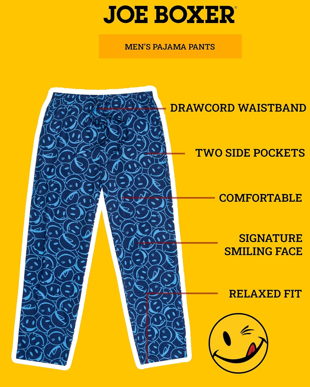 Add a playful twist to your sleepwear and loungewear collection with Joe Boxer pajama pants, made from a soft and stretchy yummy jersey knit that blends polyester and spandex for all-day comfort and easy movement. Featuring signature Joe Boxer prints, these men’s PJ pants are as fun as they are functional.