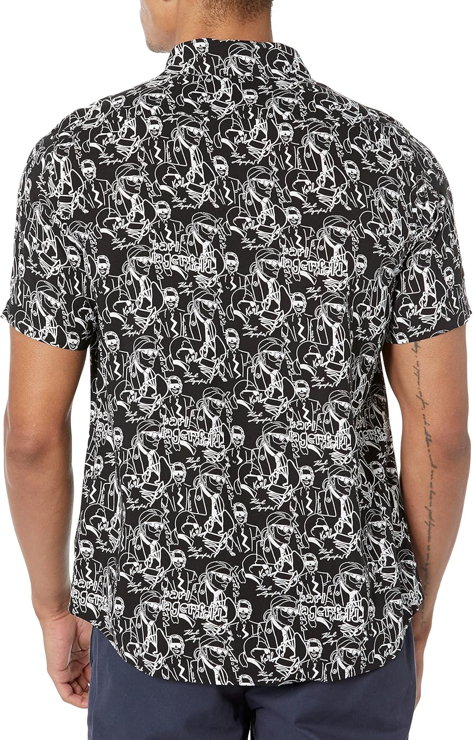 This Karl Lagerfeld Paris mens Sportswear shirt is a flowy everyday all over Karl scribbled face print button down shirt short sleeve