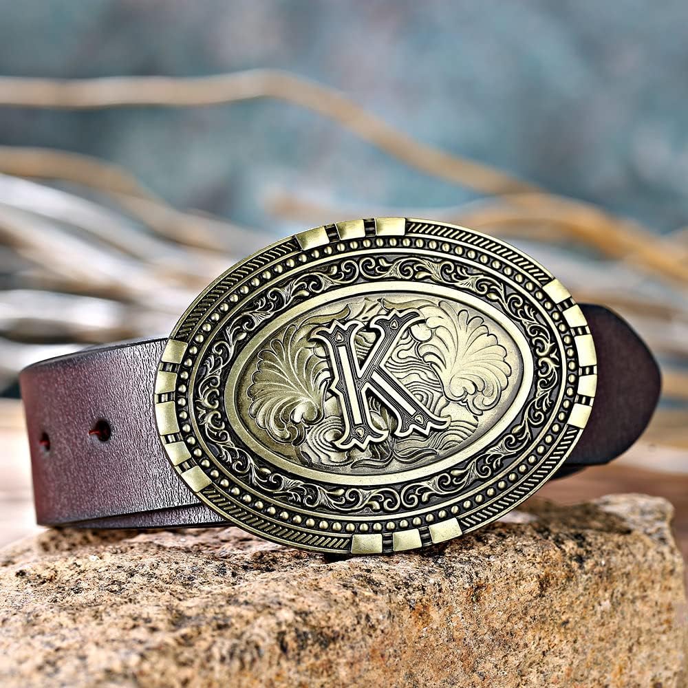 KDG Mens Western Belt Buckle – Initial Cowboy Letter Oval Belt Buckles for Women