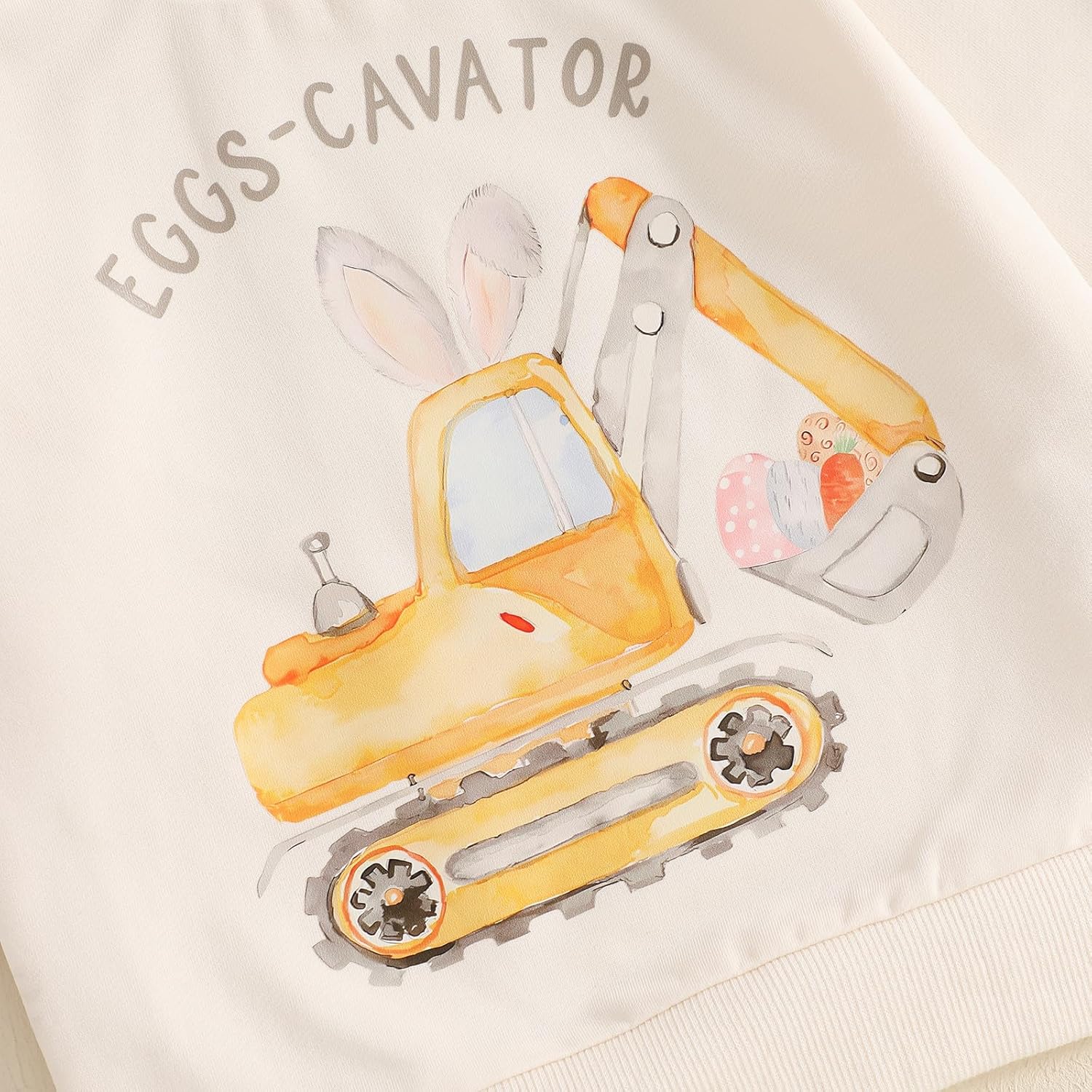Kids Toddler Baby Boy Easter Outfit Long Sleeve CrewNeck Eggs-cavator Print Pullover Sweatshirt Infant Spring Clothes