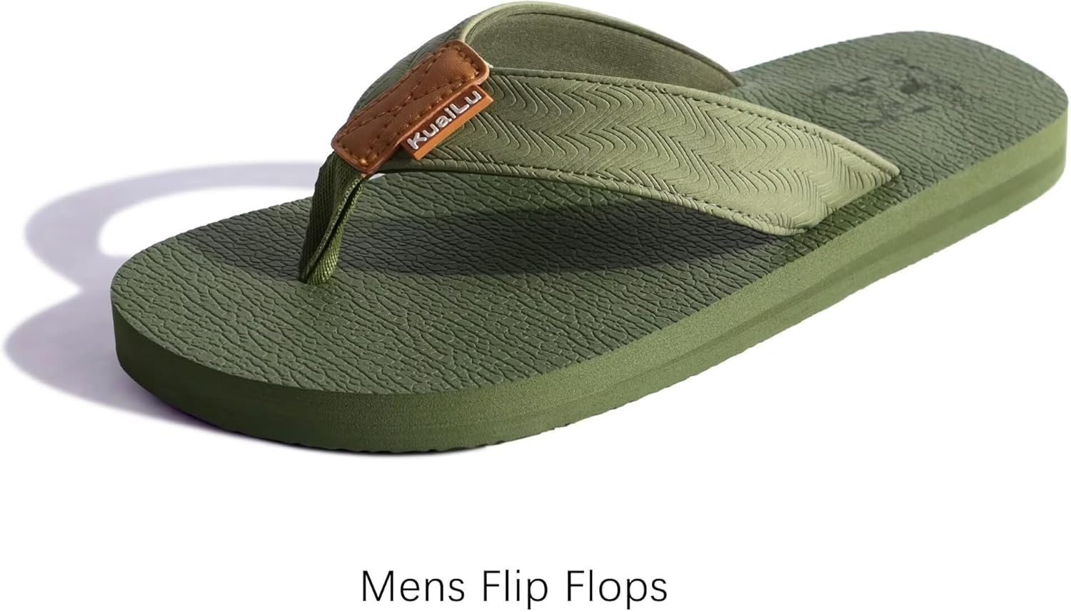 KuaiLu Men’s Yoga Mat Leather Flip Flops with Arch Support Comfortable Cushion Walking Thong Sandals Slip On Indoor Outdoor