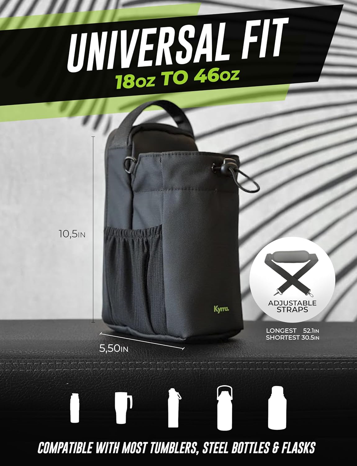 💧 UNIVERSAL WATER BOTTLE HOLDER – STAY HYDRATED ANYWHERE Fits bottles from 18oz to 46oz with reinforced elastic support and magnetic stability. Designed to hold your gym, travel, or hiking bottle securely even during intense training. Compatible with most major brands — Hydro Flask, Stanley, Iron Flask — so your hydration is always within reach.