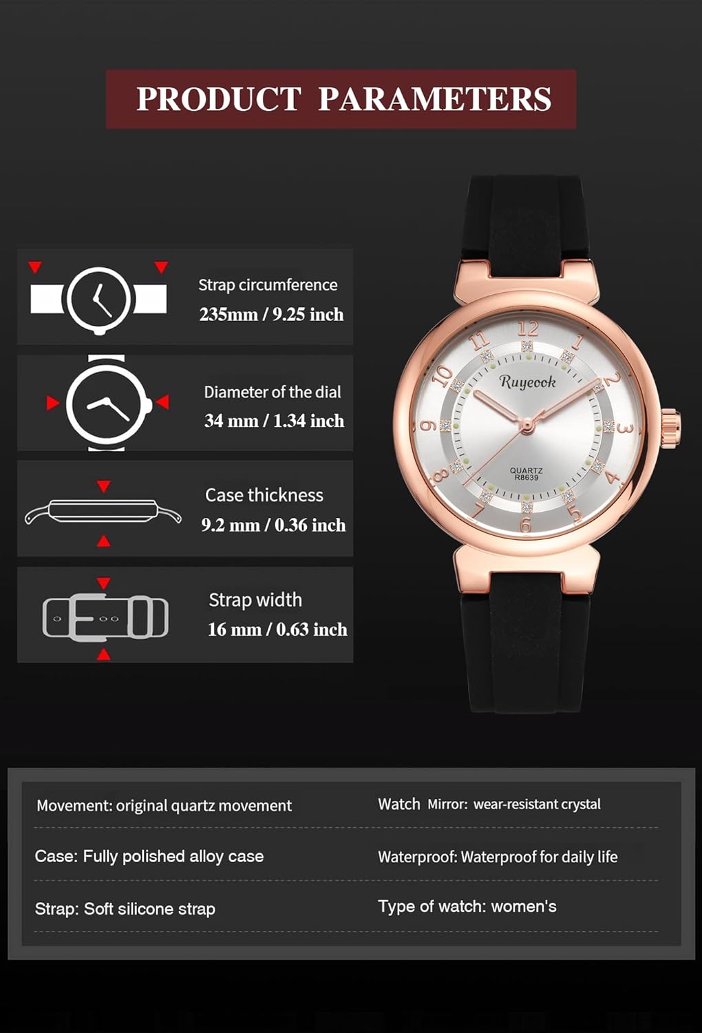 Ladies Quartz Nurse Watch, Waterproof Women’s Casual Fashion Sport Wrist Watch, Silicone Band, Crystal Markers,Easy Read Dial