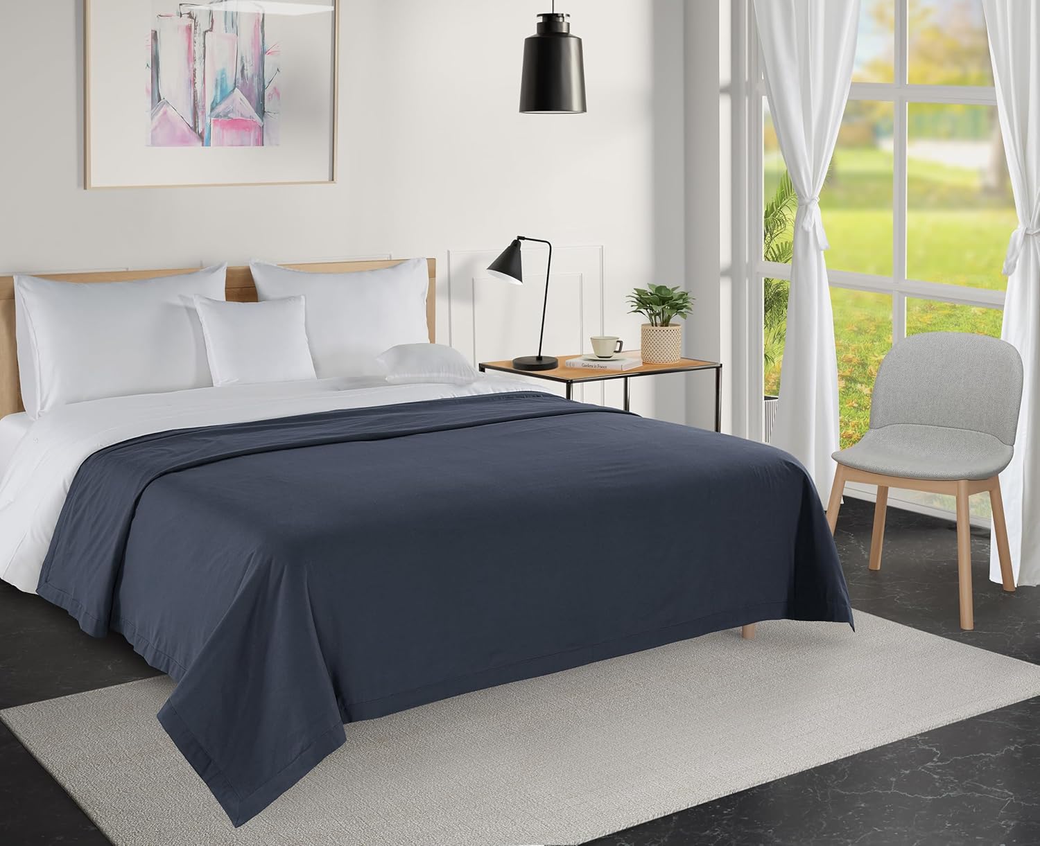 LANE LINEN Classic 3 Layer 100% Cotton Blankets, Ultra-Light, Temperature-Regulating and Soft Cal King Throw Blanket for Bed, Hardwearing and Ventilated for Multiple Outdoor Uses – Estate Blue