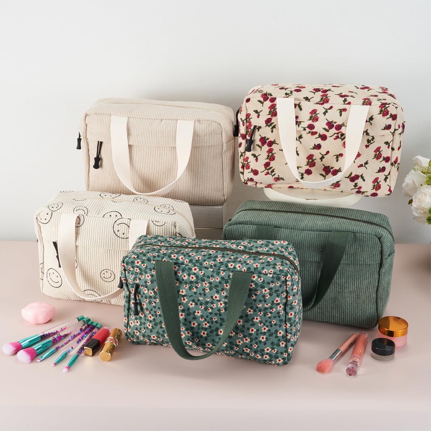 Large Makeup Bag for Women Corduroy Cosmetic bag Make up Bags Zipper Pouch with handle Cosmetic Organizer Toiletry Bag for Travel Storage