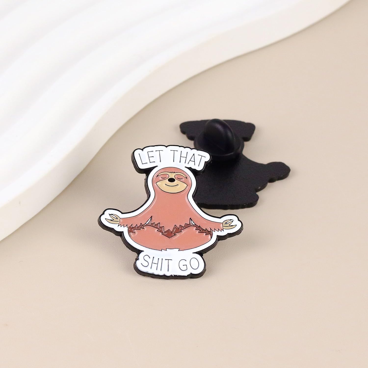 Let That Sh*t Go Meditating Sloth Pin Brooch, Lotus Pose Sloth Enamel Pin, Gift For Sassy Yoga Lover, Sarcastic Rude Humor Brooches, Mindfulness Lapel Badge, Zen Accessories