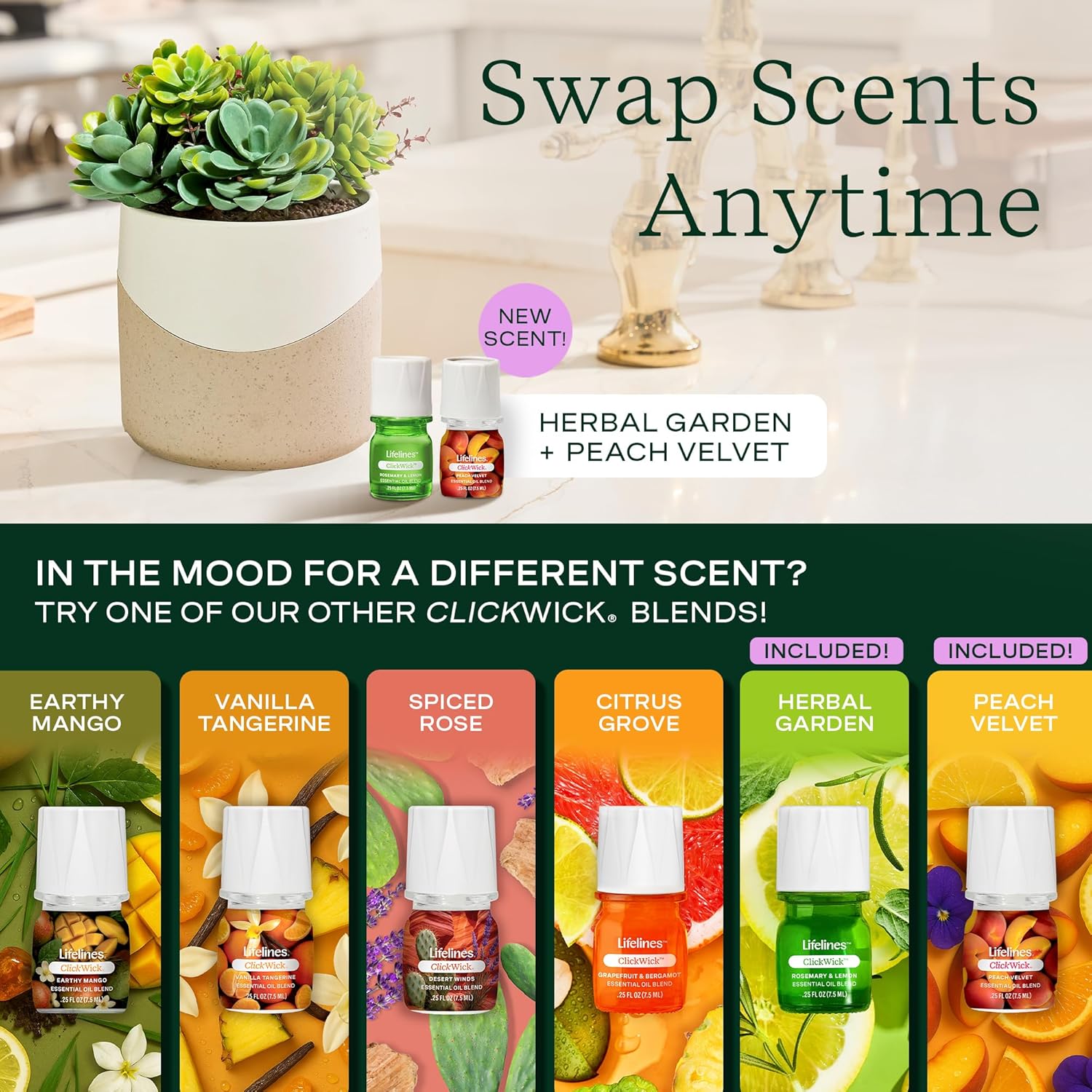 Swap Scents Anytime: With our innovative ClickWick bottle, you can swap any ClickWick Blend into the bottom of the planter. Discover other blends so you can diffuse whatever suits your mood. Each ClickWick Essential Oil Blend lasts up to 300 hours.