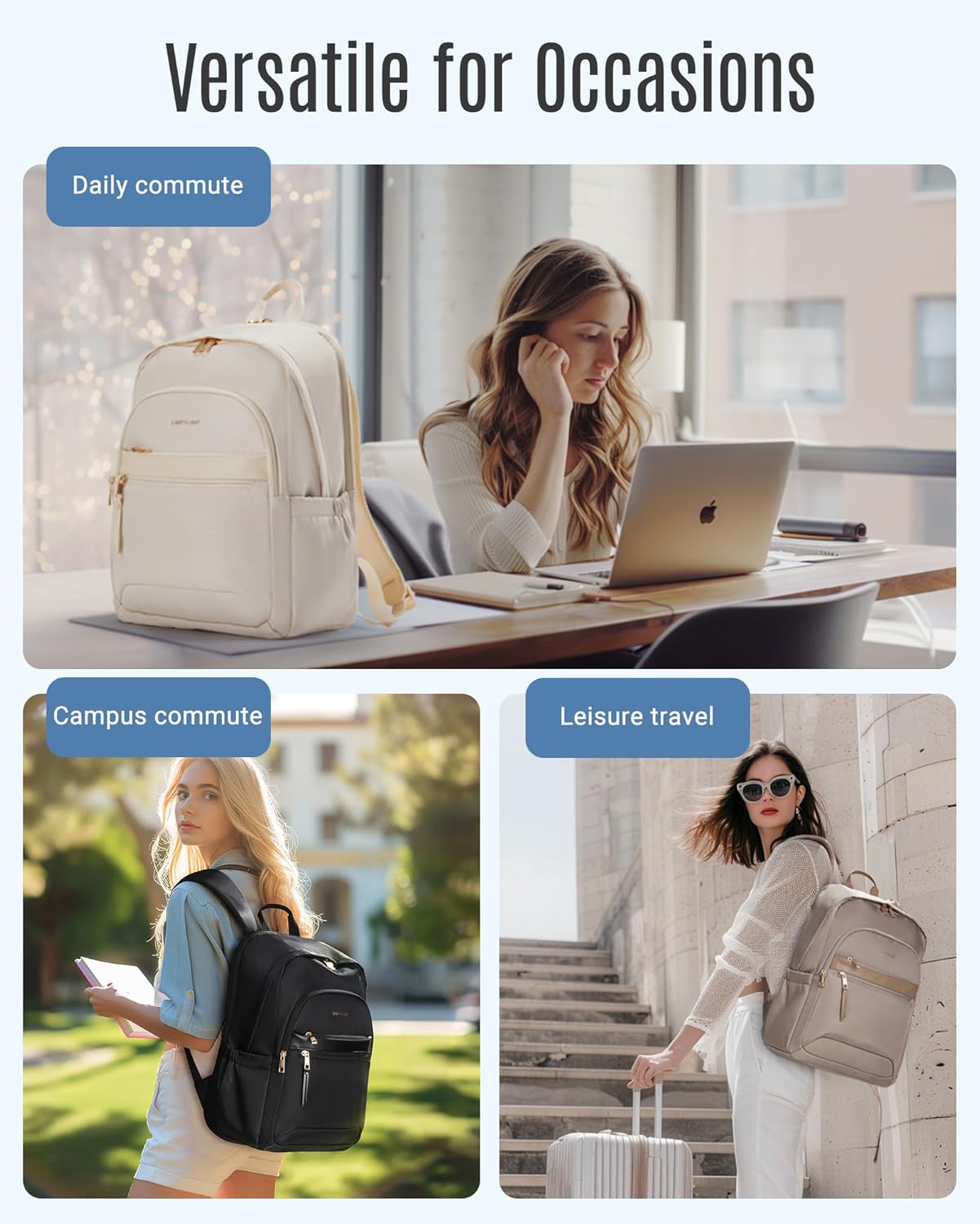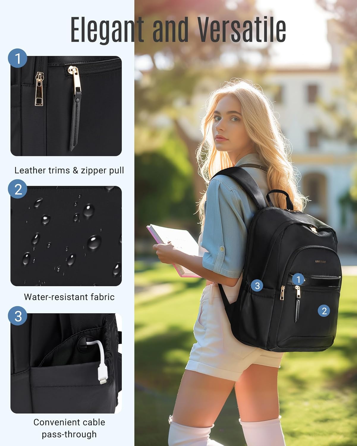 LIGHT FLIGHT Travel Backpack for Women, 15.6 Inch Stylish Laptop Backpack, Computer Bag for College Work Daily, Water-Resistant Casual Daypack with USB Port, Black