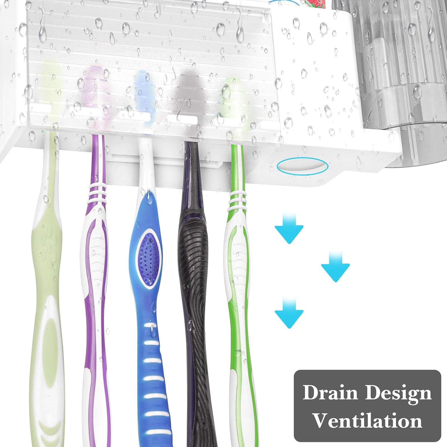 Multifunctional toothbrush holder adopt bottom drain design, easy to clean and keeps your items clean.