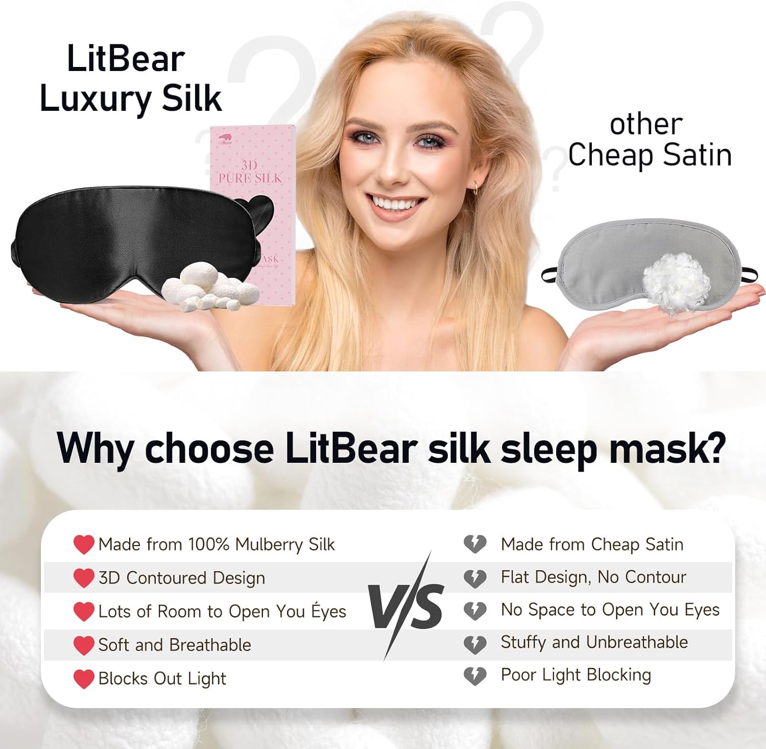 LitBear: The first brand to design 3D silk eye mask with nose wings.