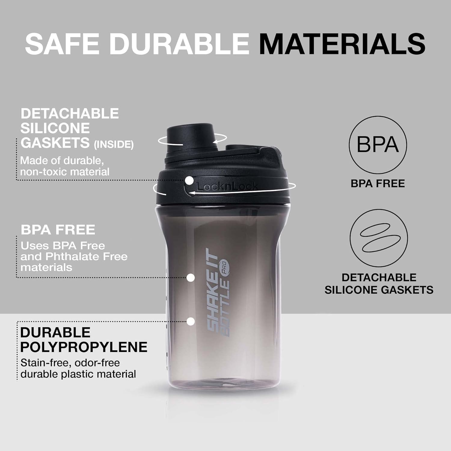 LocknLock Shake It Bottle Pro is geared for fitness and lifestyle. Made out of BPA-free, long-lasting safe materials.