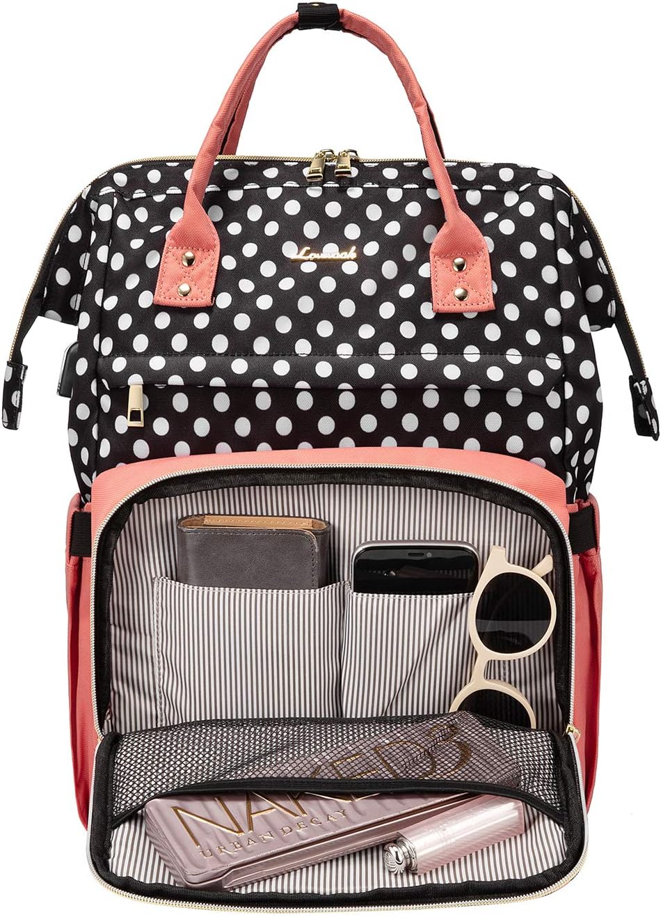 LOVEVOOK Laptop Backpack for Women Work Laptop Bag Stylish Teacher Backpack Business Computer Bags College Laptop Rucksack, Polka-Pink