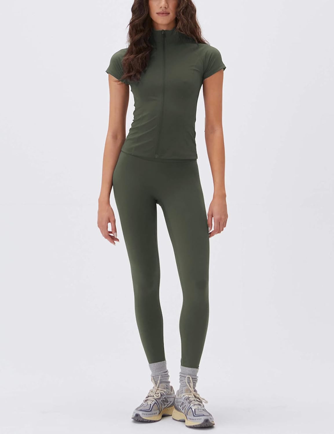 Lviefent Womens Lightweight Full Zip Active Running Track Jacket Workout Short Sleeve Top Slim Fit Yoga Sportswear