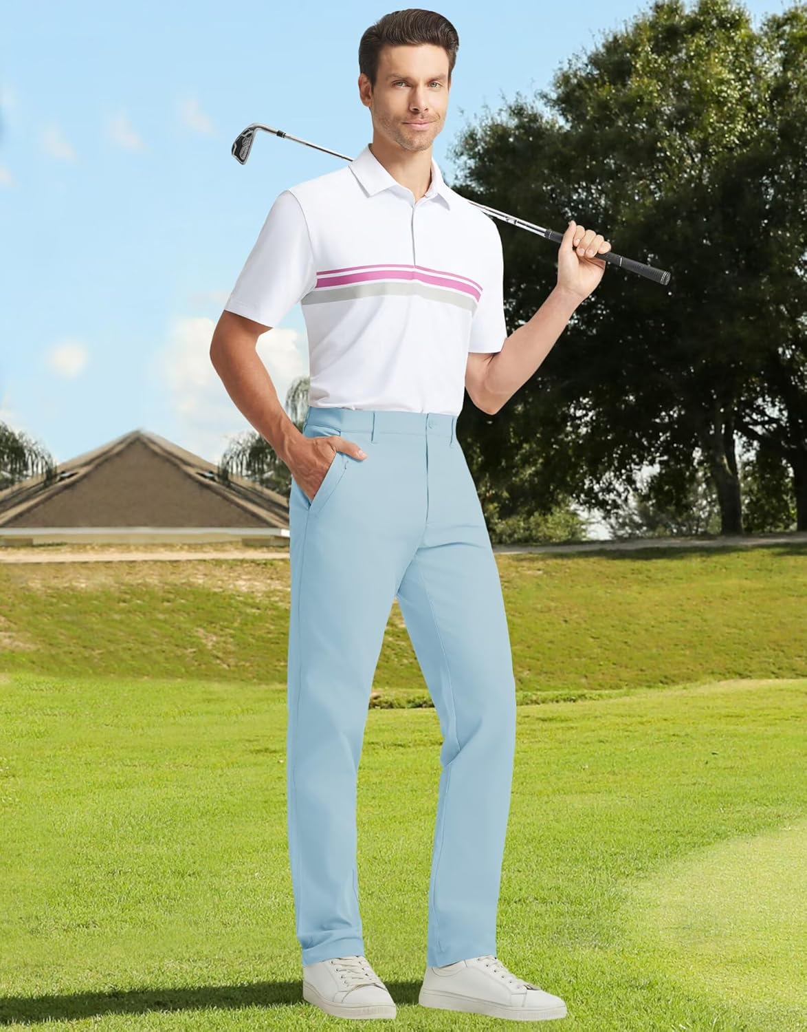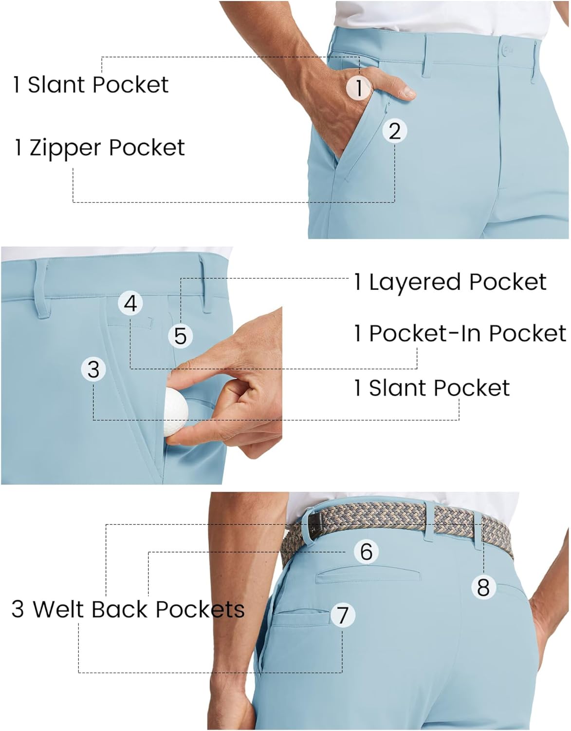 M MAELREG Mens Golf Pants 8 Pockets Water-Resistant -30″/32″/34″ Lightweight Stretch Business Casual Work Mens Dress Pants