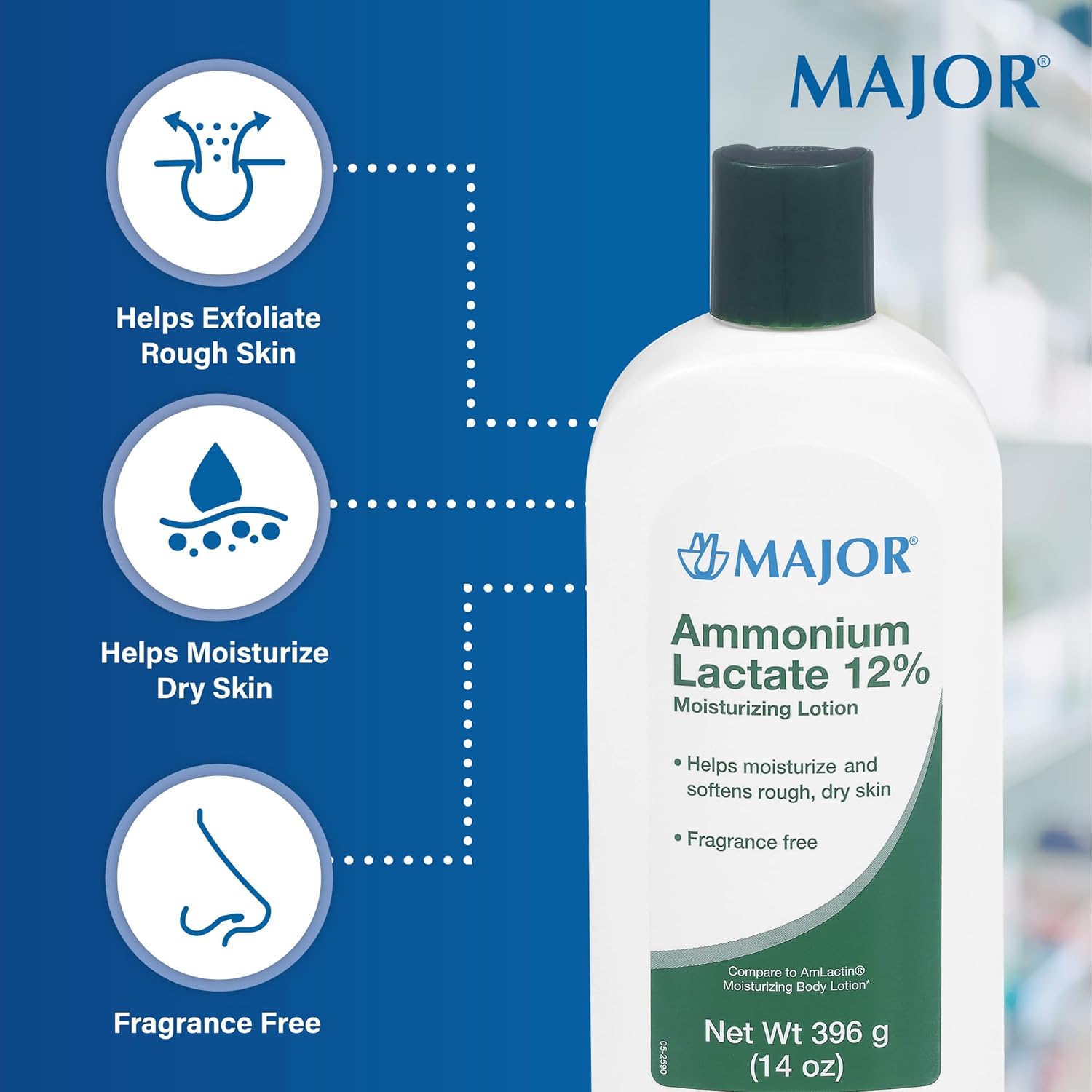 Major Ammonium Lactate 12% Moisturizing Lotion – Lactic Acid Lotion – Helps Moisturize and Soften Rough, Dry Skin – Daily Body Lotion – Fragrance-Free – 14 Oz (1 Pack)