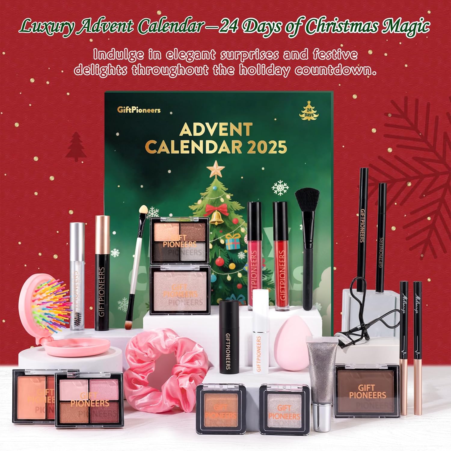 Makeup Advent Calendar 2025, 24 Days Christmas Beauty Countdown Calendar Makeup Set for Adult Women & Teen Girls, Ideal Xmas Holiday Surprise Gifts for Women