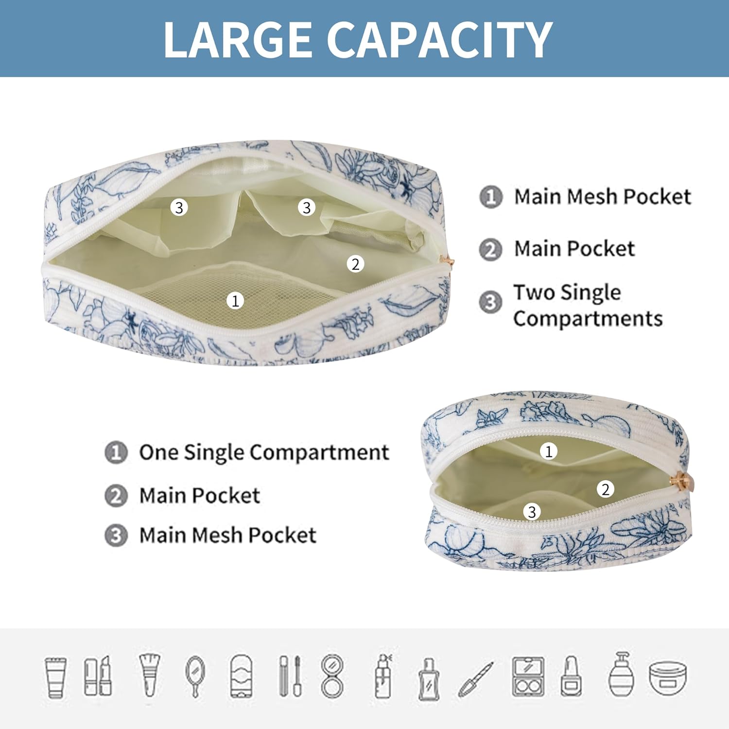 Makeup Bag for Purse Small Cosmetics Bag Corduroy Cute Cosmetic Pouch for Women (2PC Plum blossom)