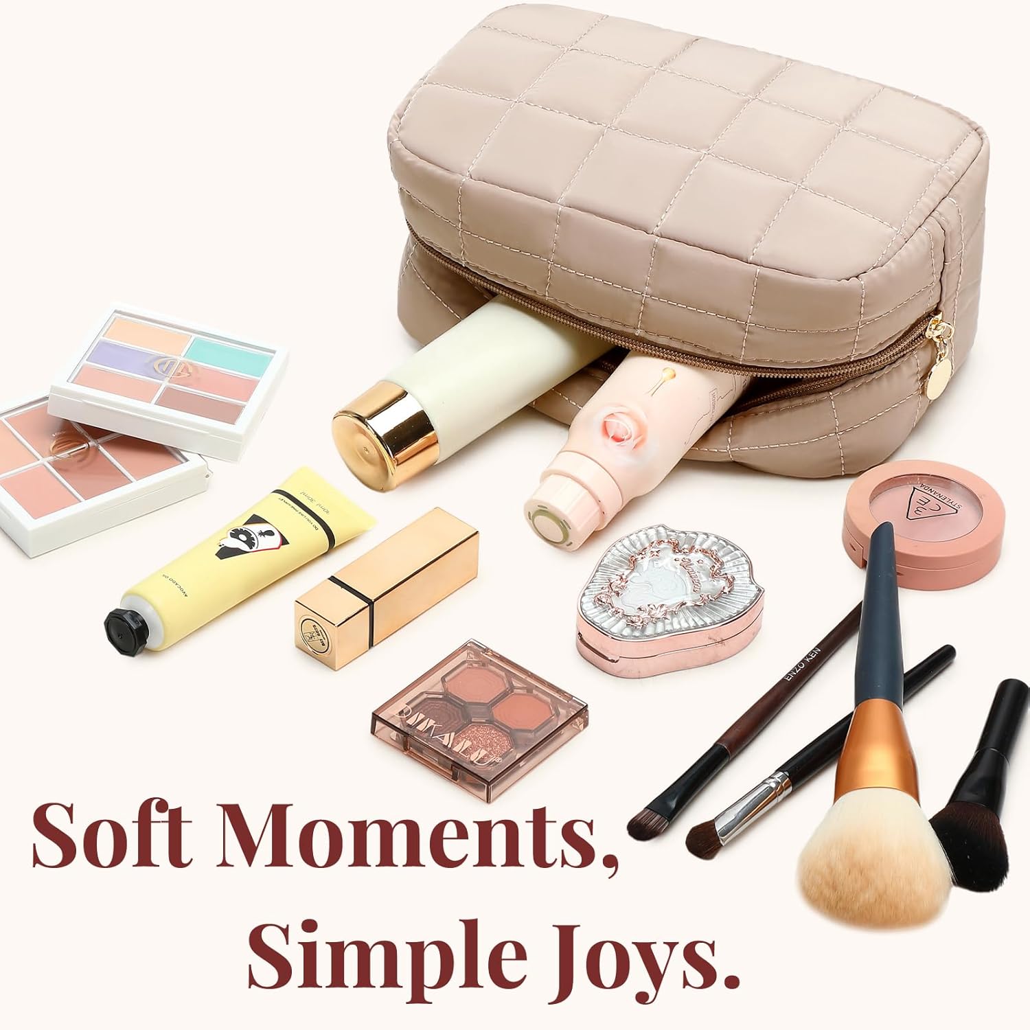 The puffy quilted design adds a cozy touch and keeps its shape. This stylish cosmetic bag brings comfort and personality to your everyday routine.