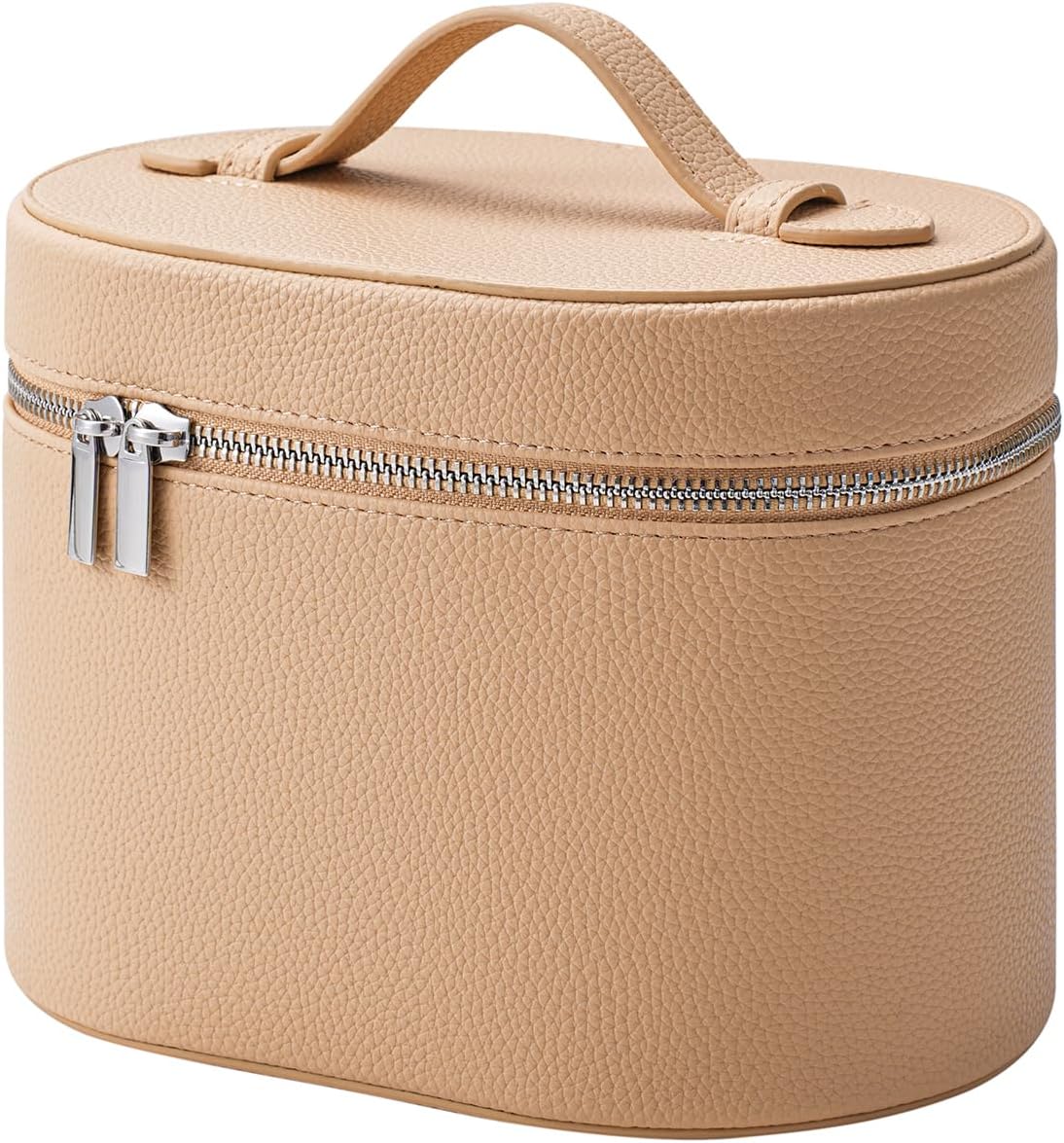 Makeup Bag Vanity Case with Divider and Handle, Aesthetic Makeup Bags, Waterproof PU Leather Toiletry Bag for Women Girls, Portable Cosmetic Organizer Bag (04Khaki)
