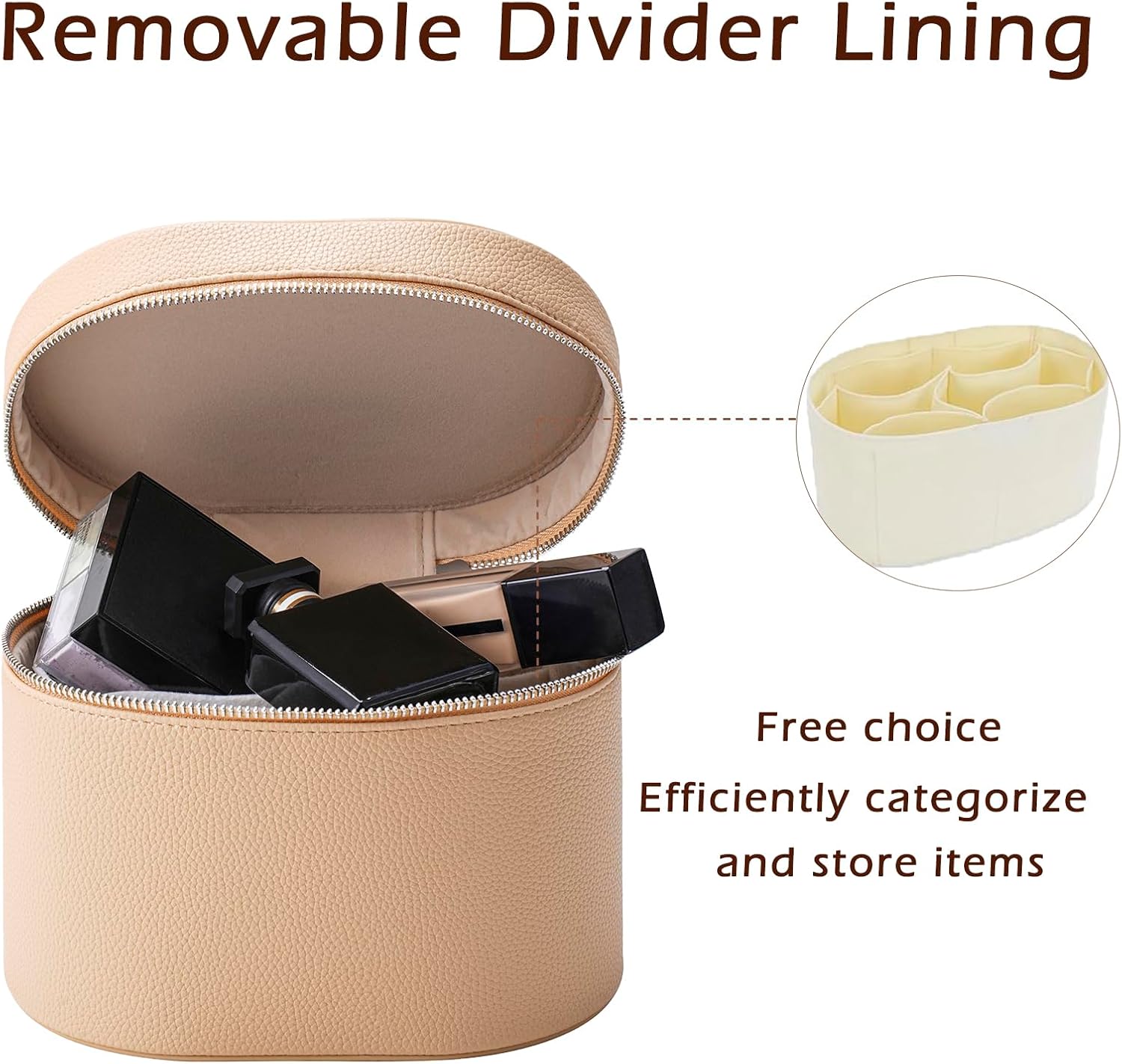 [Unique Design]: This Toiletry Bag comes with removable compartmentsinside, you can use the compartments according to your own placement habits.Elevated with exquisite platinum-finish dual zippers, exuding sophisticated elegance.