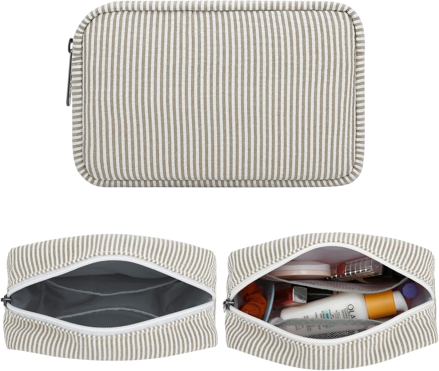 Makeup Bag,Travel Cosmetic Pouch Toiletry Organizer Portable Cute Make Up Case for Women Girls with Zipper (Brown Stripe)