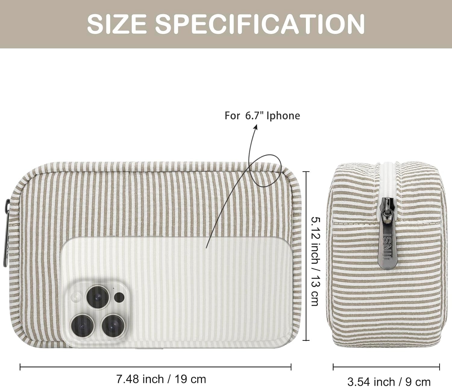 JINSI Portable Cute Makeup Bag for Women, Brown Stripe Travel Organizer
