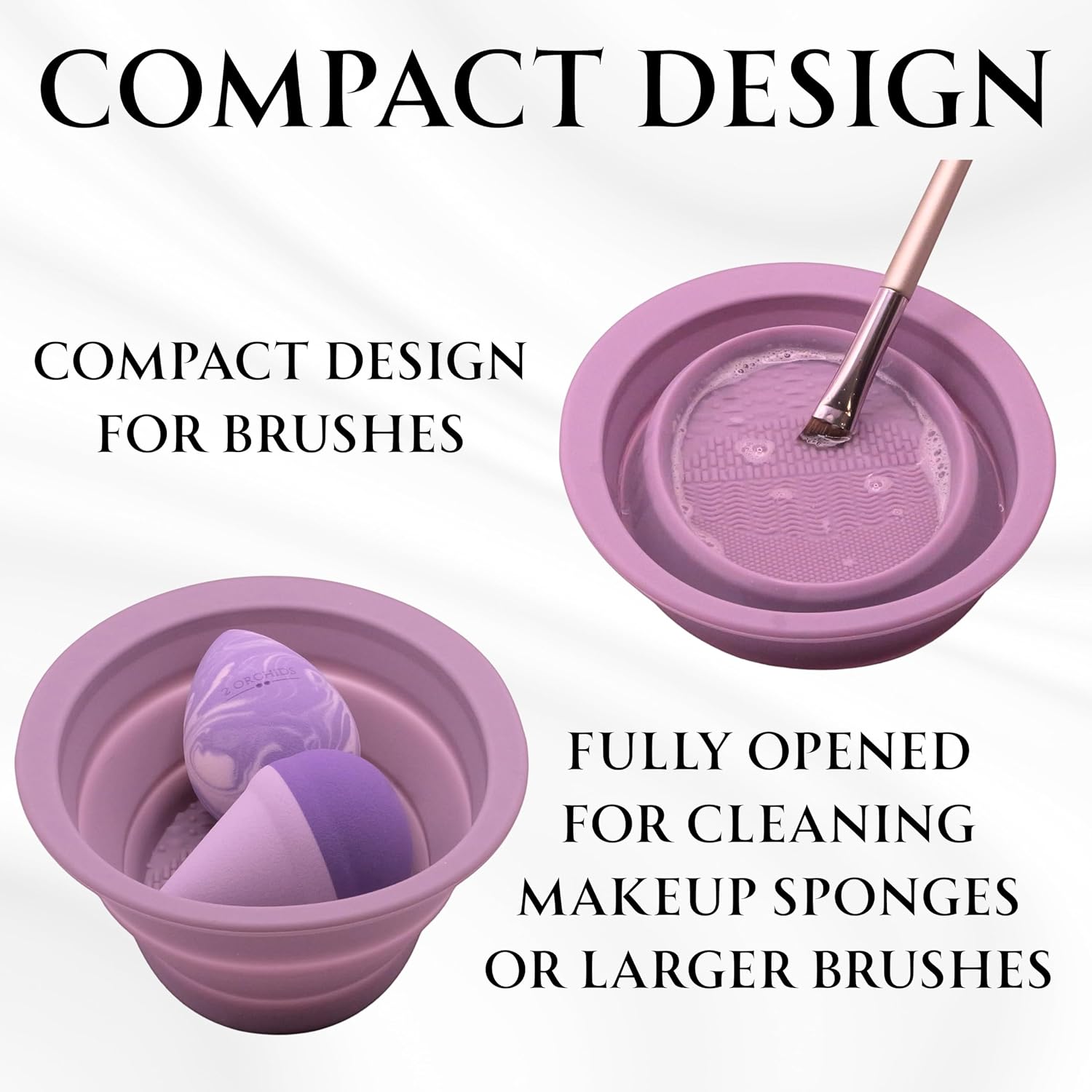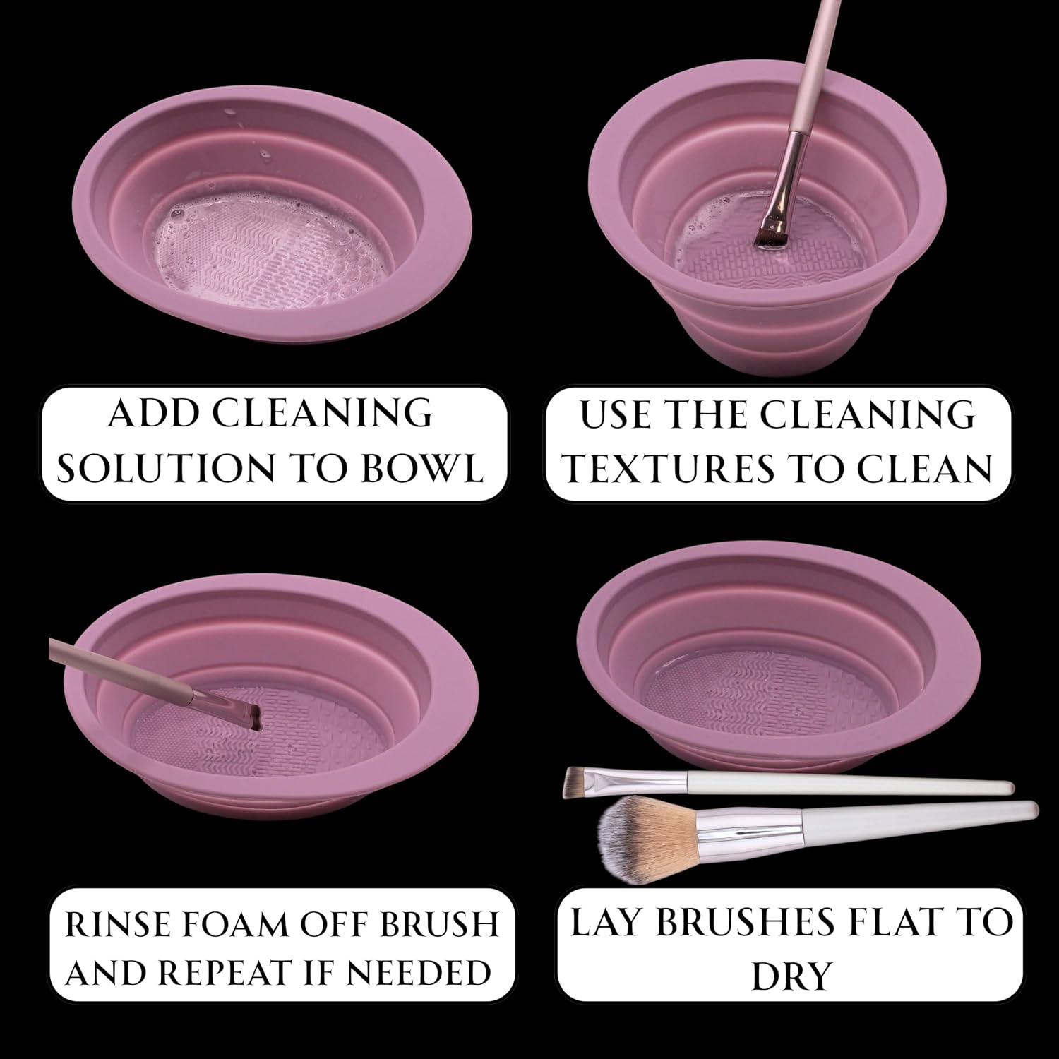 Makeup Brush Cleaner Bowl – Foldable Silicone Makeup Brush Cleaning Mat & Pad, Portable Brush Cleaner Tool for Brushes, Sponges, Puffs – Makeup Accessories & Tools (Purple)