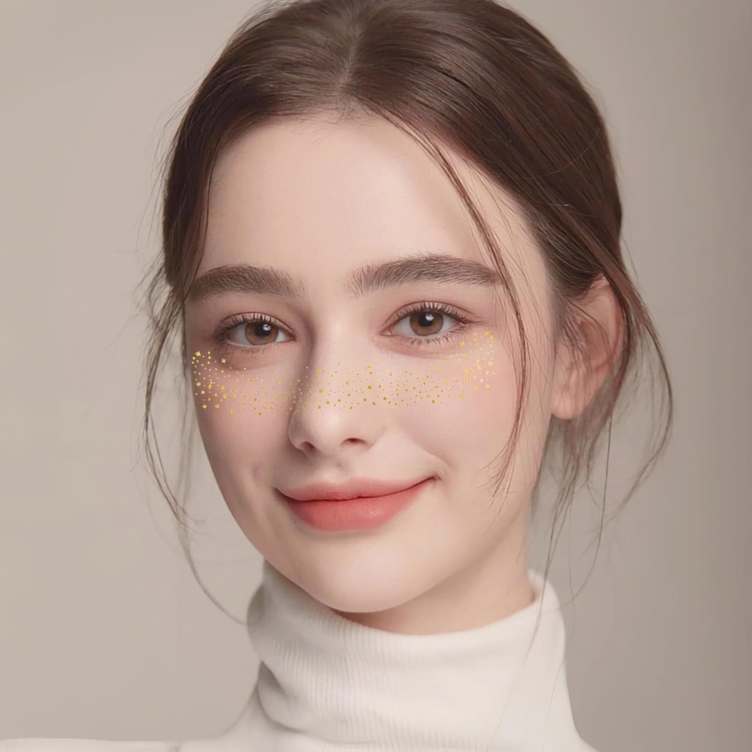 Glitter Freckles Face Tattoo, Waterproof Sparkle Face Glitter Speckles Patches for Women, Cute Star Glitter Temporary Tattoo Makeup