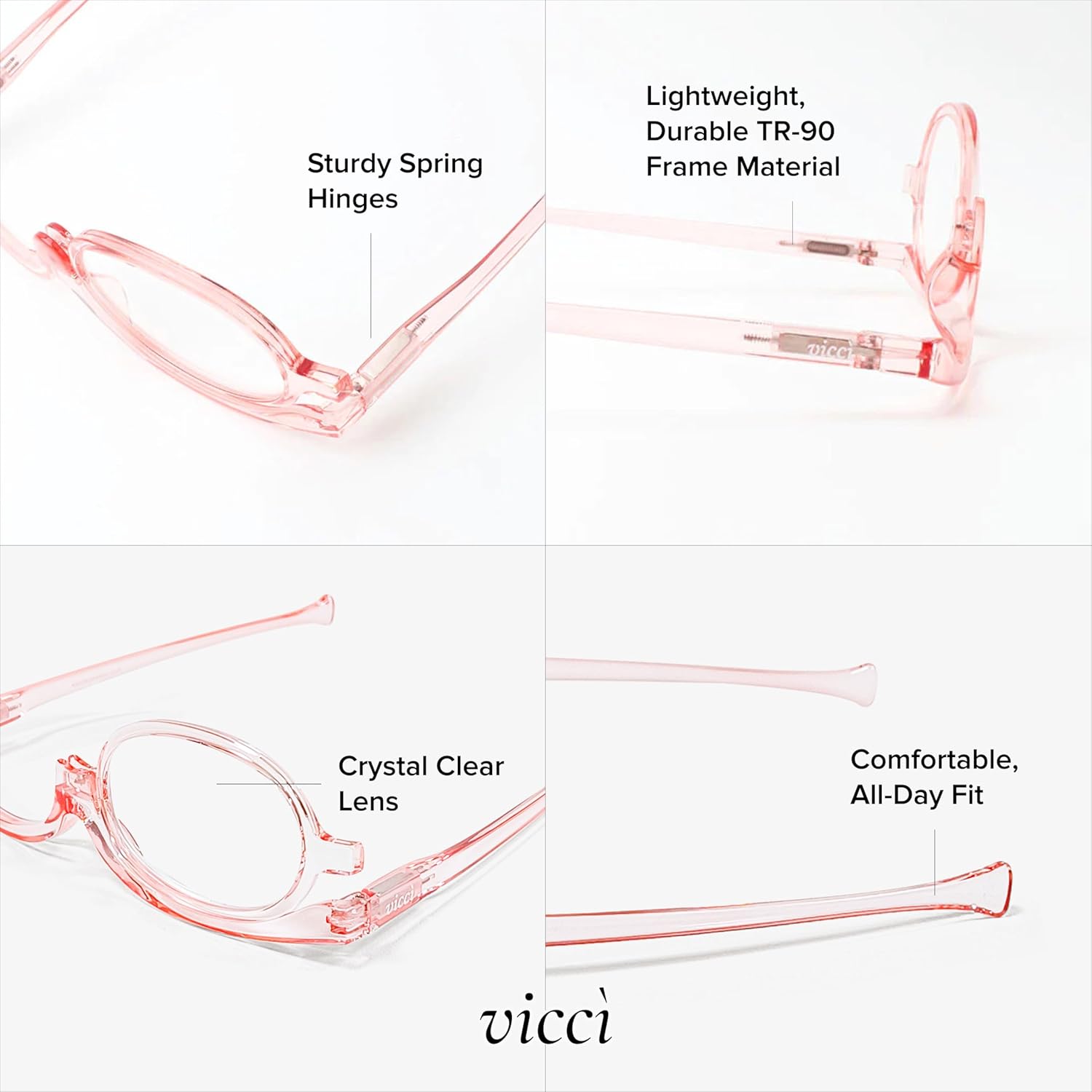 Makeup Reading Glasses | Flip-Up Cosmetic Readers for Women | Reversible Magnifying Eyeglasses for Undereye Application