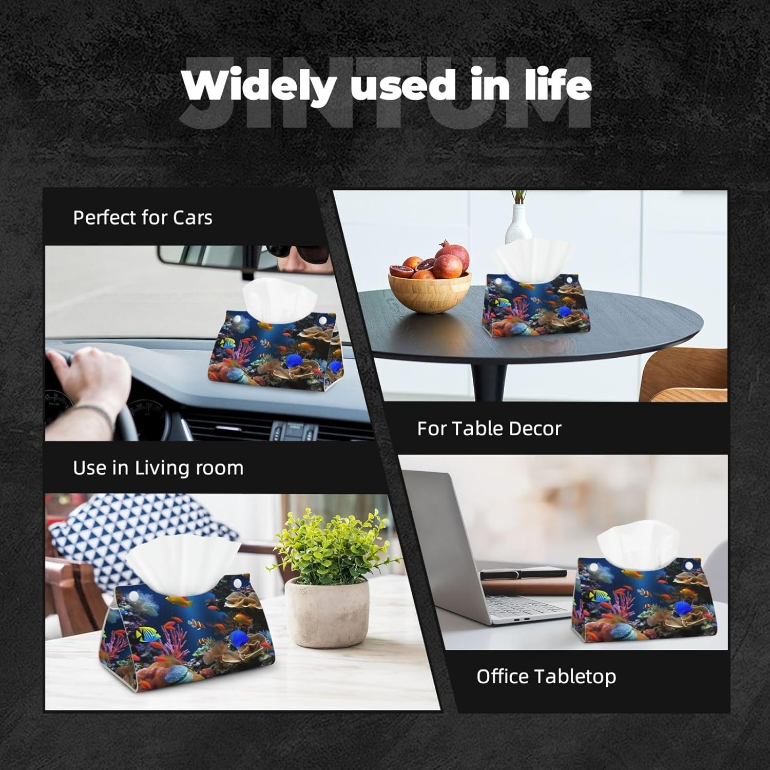 Convenient To Store: Made with premium quality PU leather. The Marine life tissue box case Stylish Tissue Box Holder can be foldable reusable for easy storage, also can be effortlessly restored to its original shape. Easy to cleaning, just wipe with wet cloth
