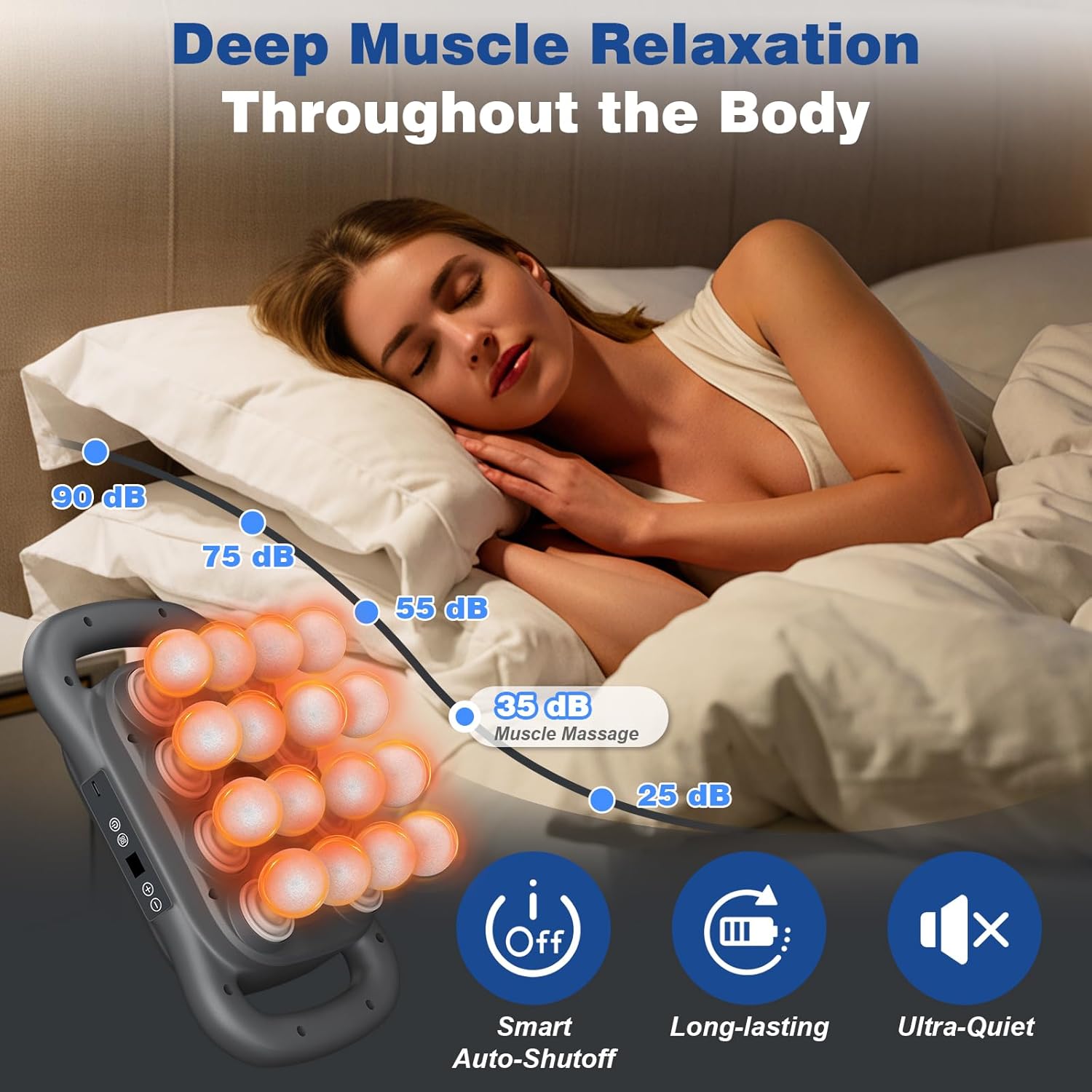 【Enhanced Massage Effects】Double the effects of traditional massage with our innovative design. This massage gun provides deep tissue penetration for enhanced relaxation and muscle relief, making it the ideal back massager for pain relief deep tissue needs.