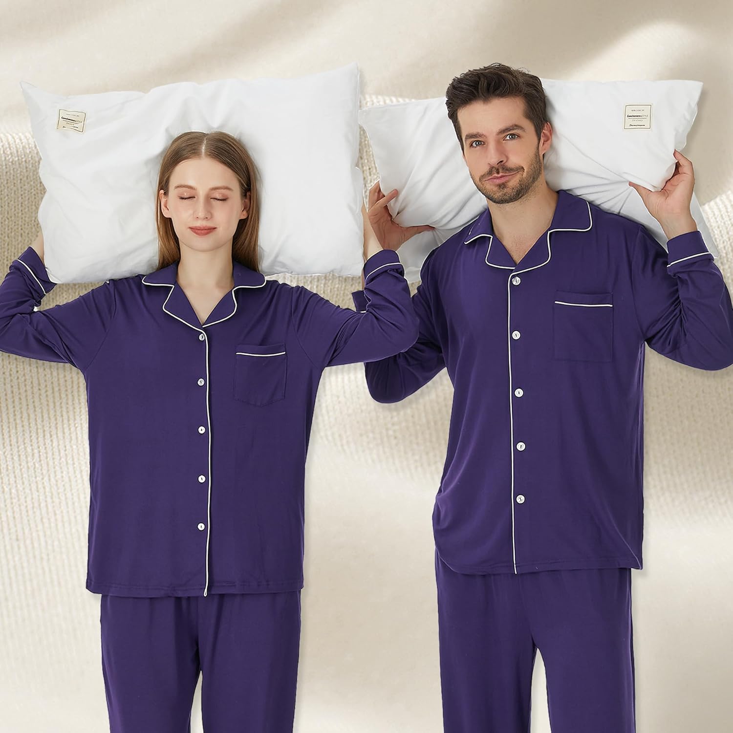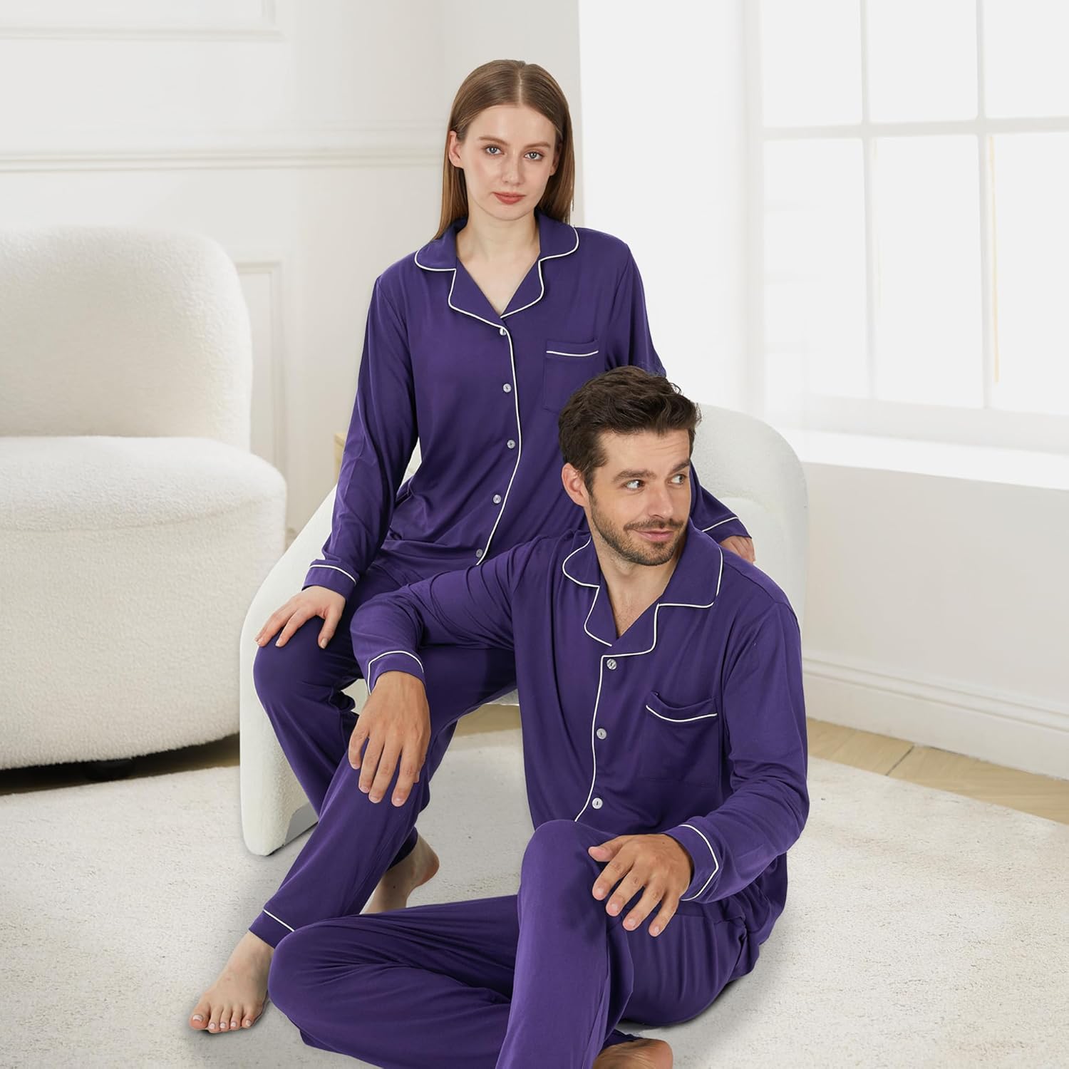 Matching Pajamas for Couples, Button Up Pjs Set for Men and Women Soft Warm Loungewear