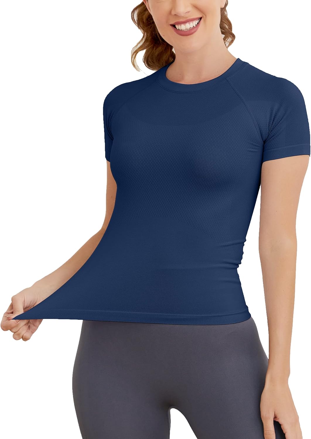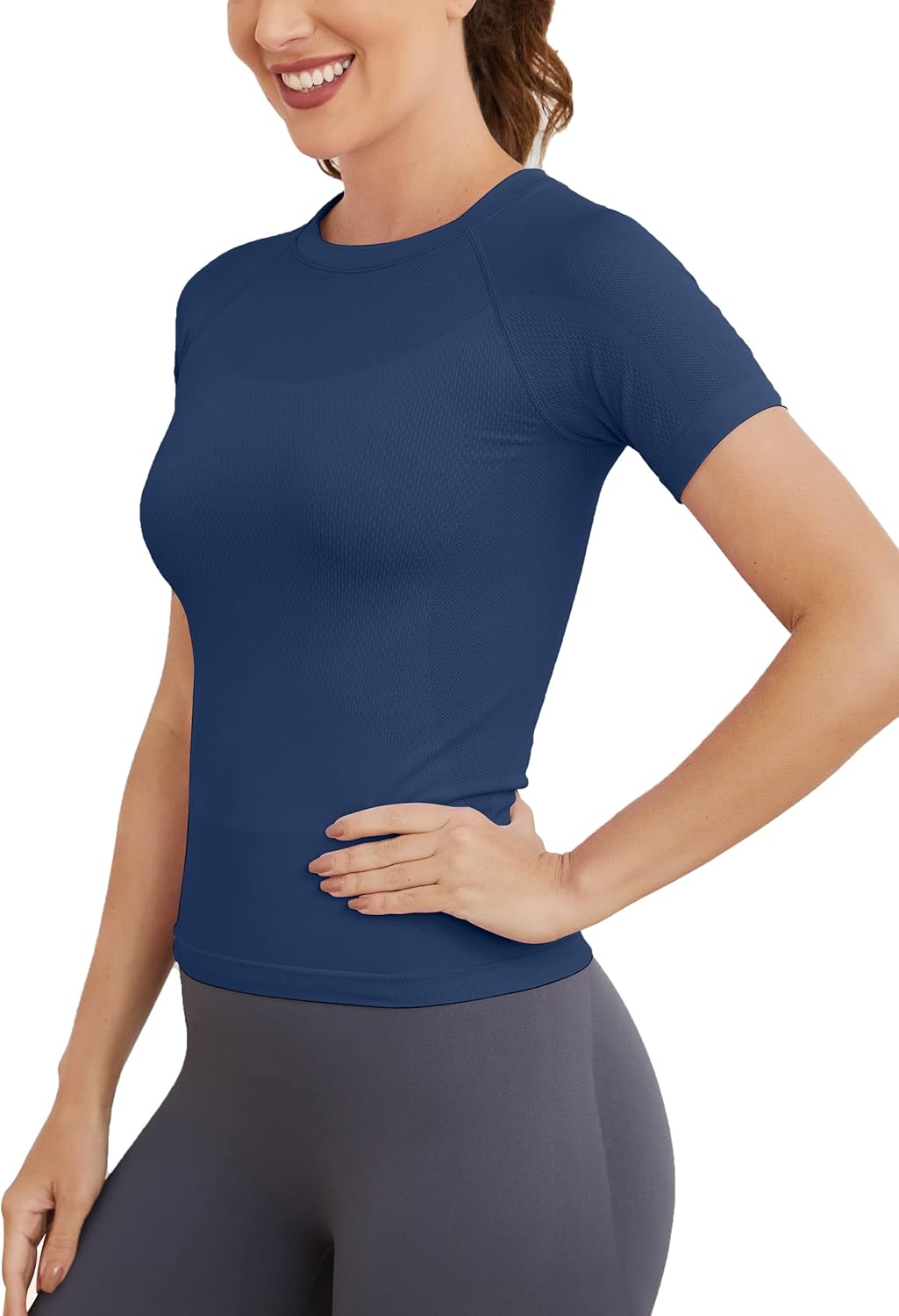 MathCat Short Sleeve Workout Tops for Women, Seamless Workout Shirts for Women, Yoga Athletic Shirts Soft Gym Tops