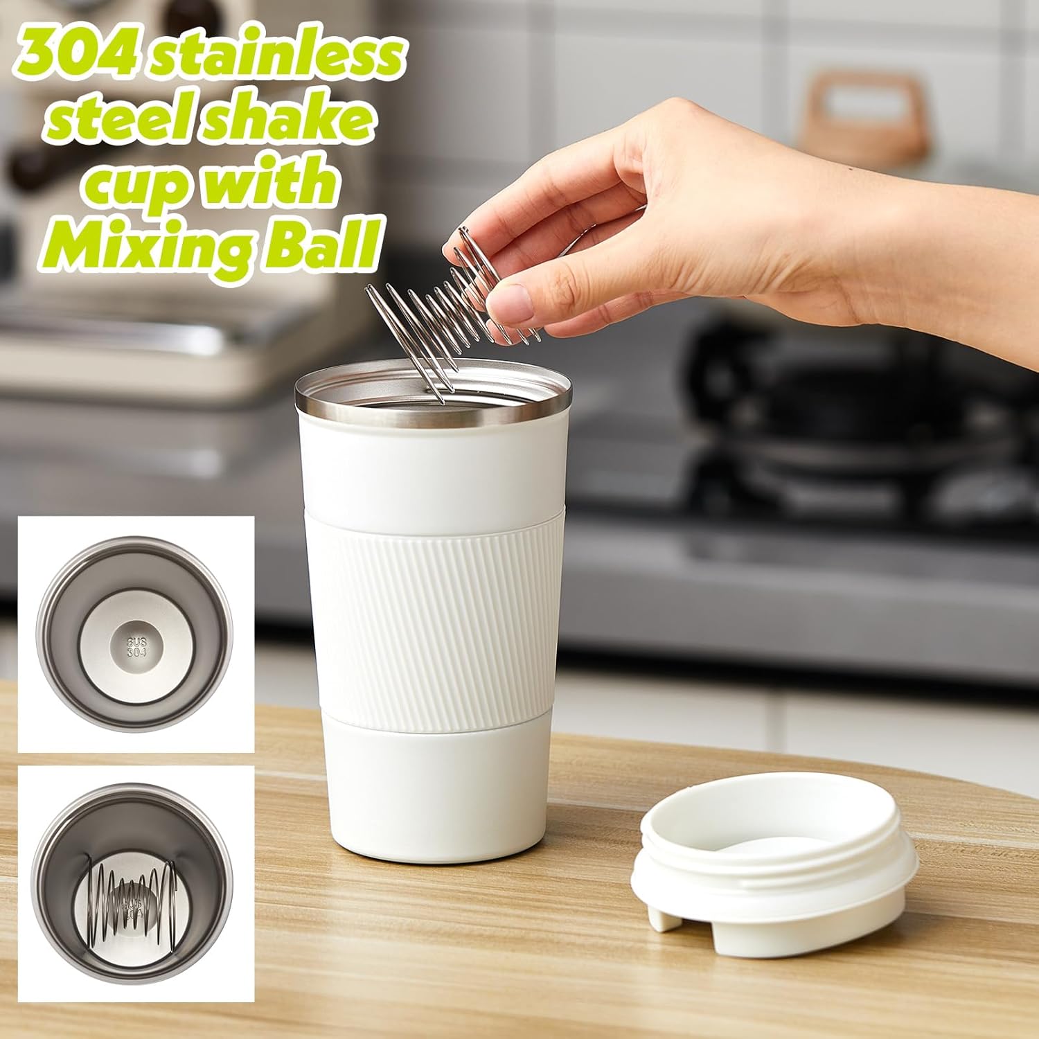 Versatile and Easy to Clean: with a generous capacity of 510 ml / 17 oz and a user-friendly wide-mouth design, our protein shaker stainless steel caters to a variety of beverages, from protein shakes to coffee,smoothies; Cleaning is a breeze, both for the bottle and the removable mixing ball, ensuring hygiene
