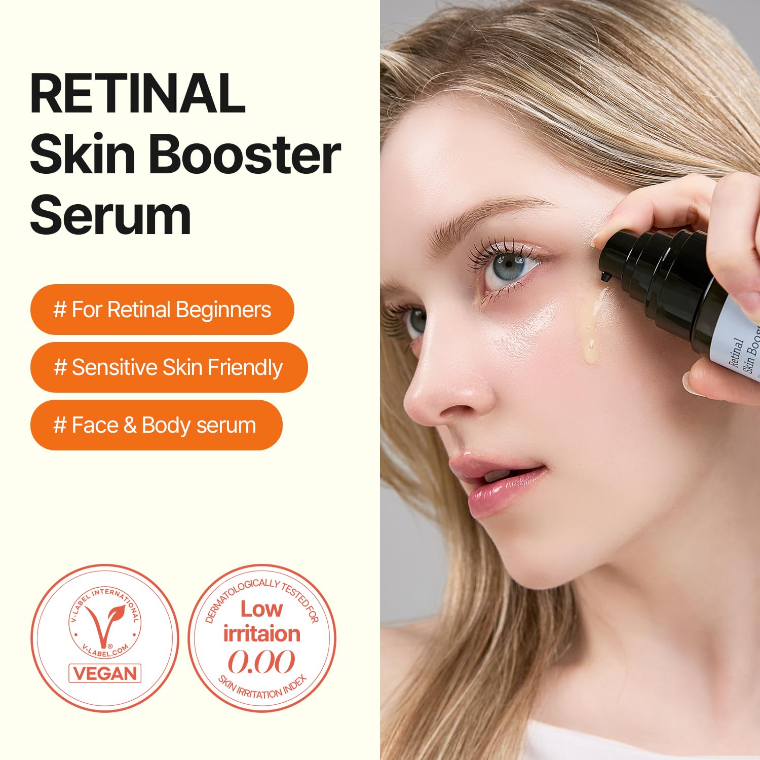 [💧 Fast-Absorbing, Lightweight Texture 💧] This watery formula absorbs quickly, leaving your skin feeling smooth without any stickiness. It gently calms red and delicate areas, and the natural yellow hue from retinal ensures pure care without artificial coloring.