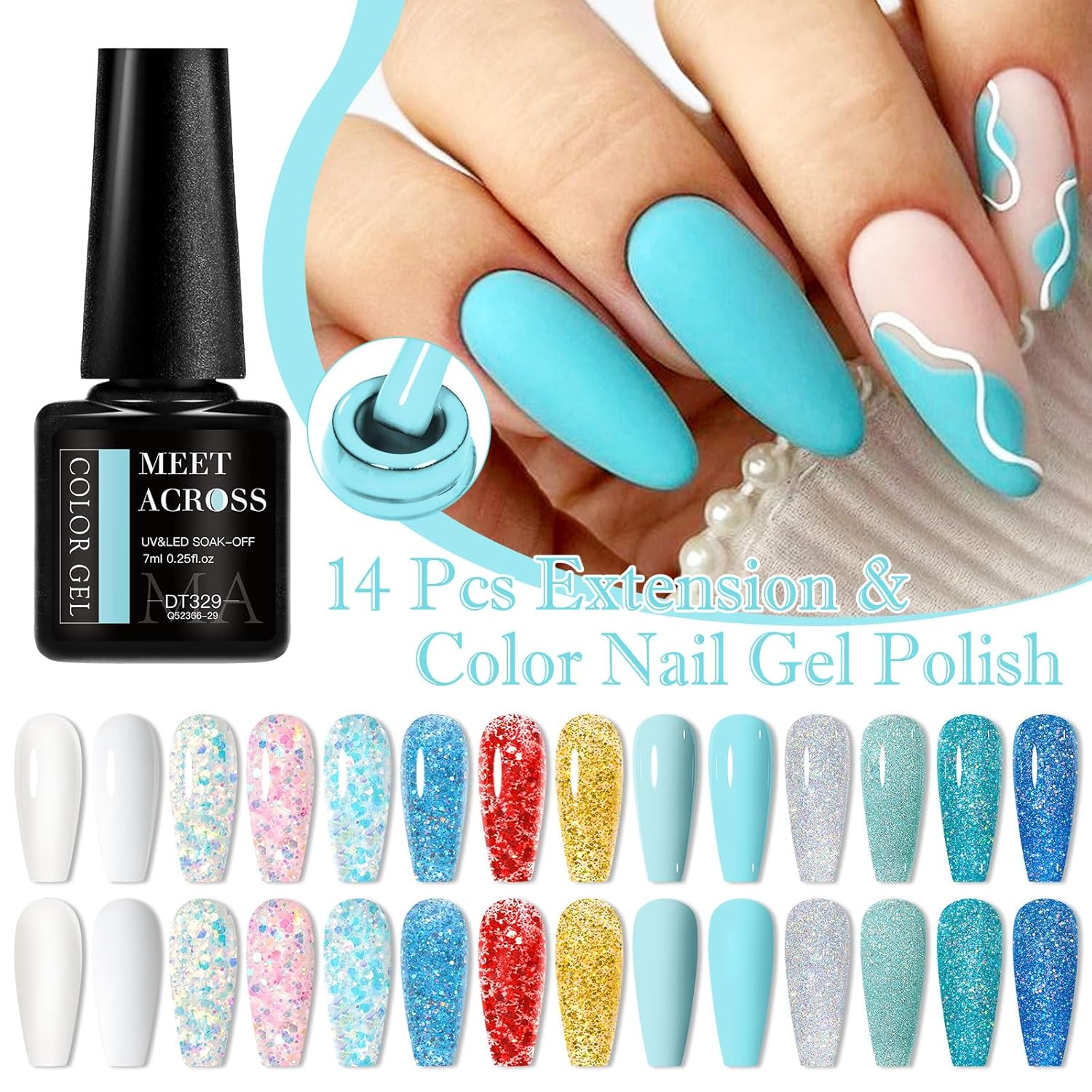 MEET ACROSS 8 Colors Poly Gel Nail Kit 6 Colors Gel Nail Polish Kit with Slip Solution All In One Nail Art Starter Kit Suitable For All Seasons