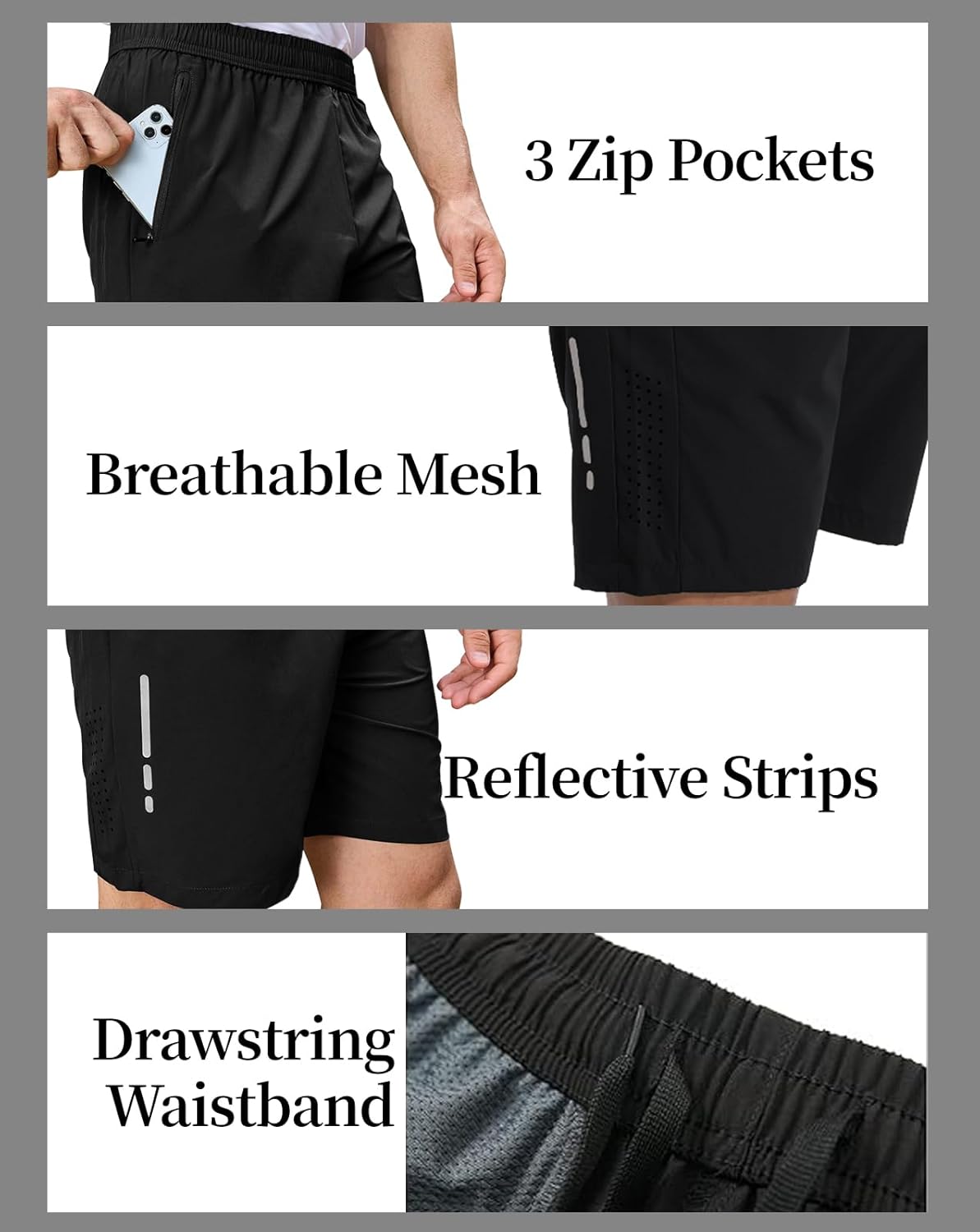 Men’s Athletic Gym Shorts with 3 Zipper Pockets 7″ Lightweight Quick Dry Workout Running Shorts