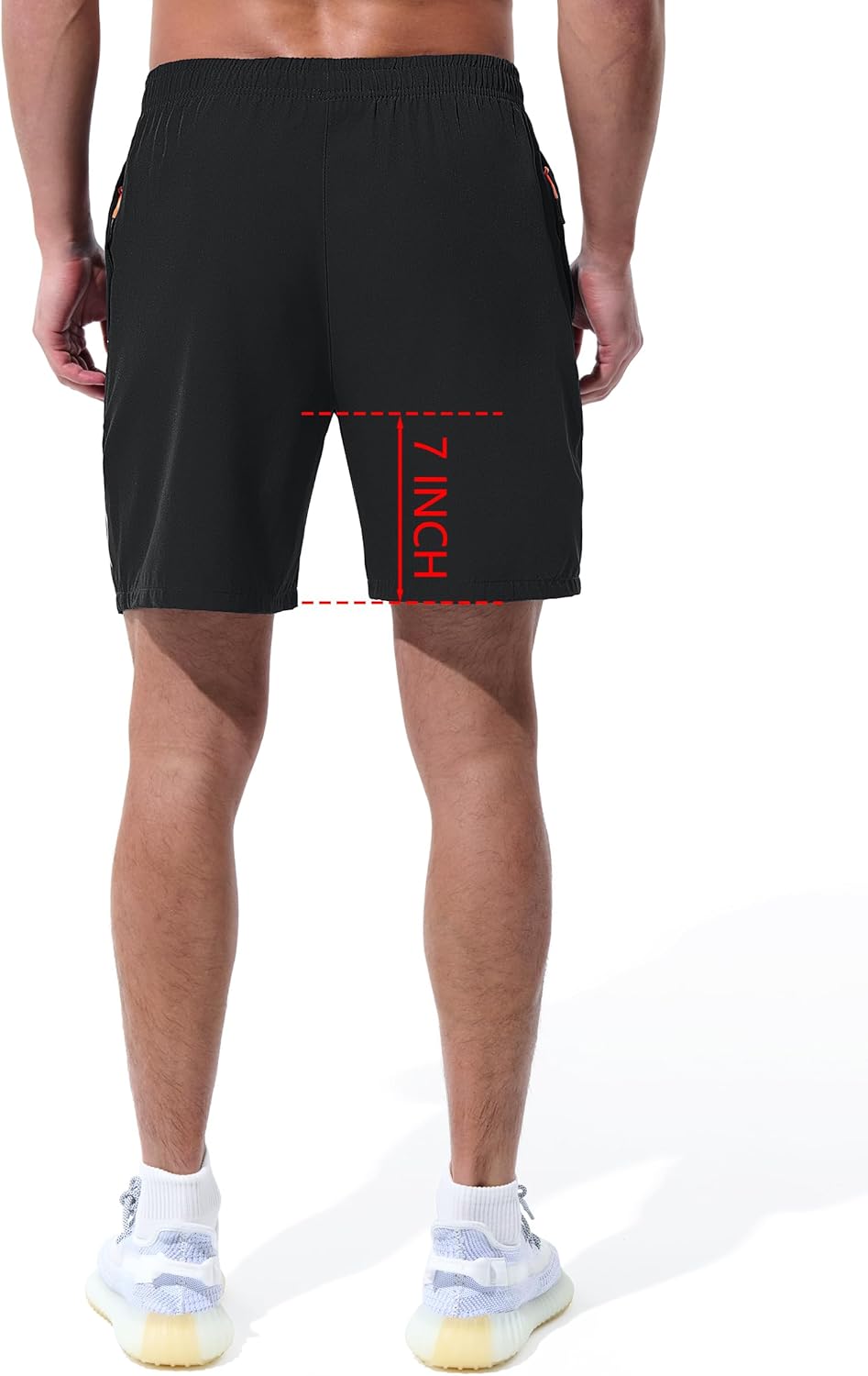 Mens Athletic Shorts Running Shorts Quick Dry Workout Shorts 7″/ 9″ Lightweight Gym Basketball Shorts Zipper Pockets