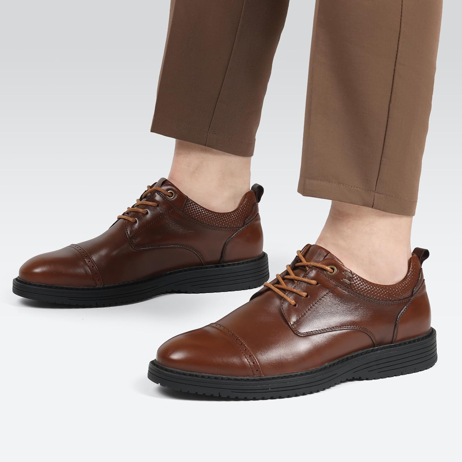 Mens Dress Shoes Genuine Leather Lace Up Cap Toe Casual Oxford Shoes Comfortable Business Formal Derby Dress Sneakers for Office Wedding Church
