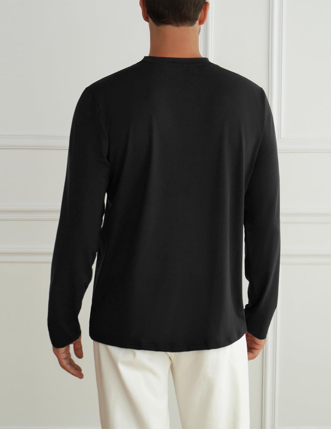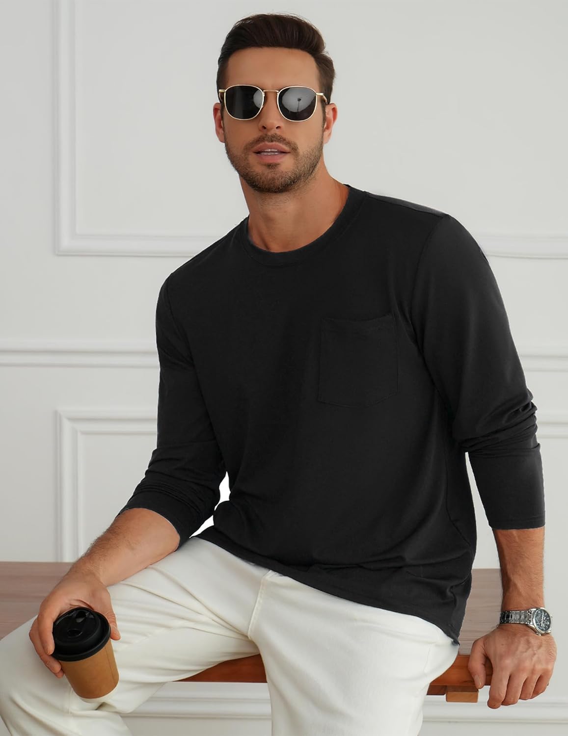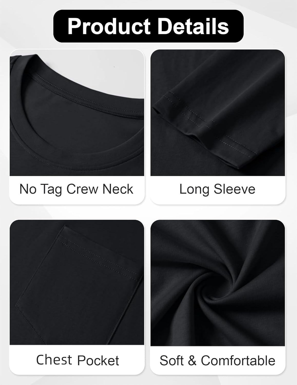 Men’s Long Sleeve T-Shirts Fall Casual Crewneck Tee Shirt with Pocket Top Regular Fit