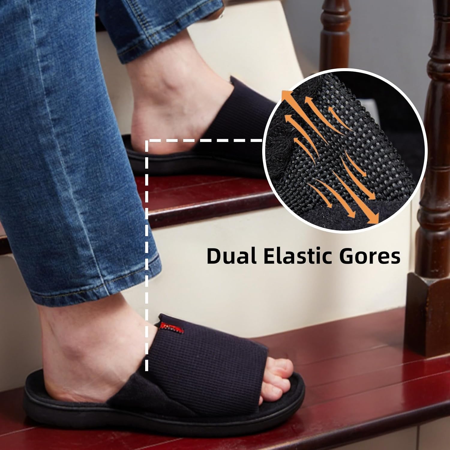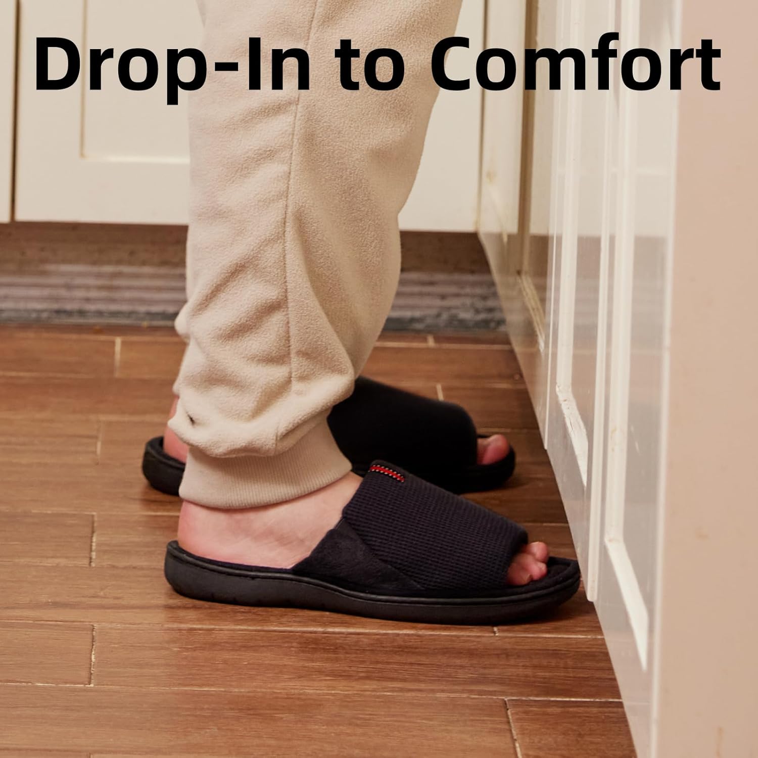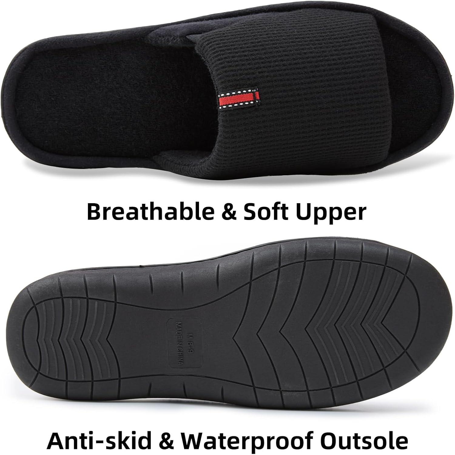 Men’s Open-Toe Slippers for Indoors – Breathable Waffle Weave & Terry Lined House Shoes with Memory Foam, Machine Washable, Non-Slip Sole, Comfort Fit for Wide Feet
