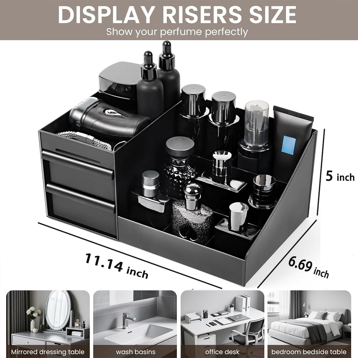 Mens Perfume Organizer, Mens Cologne Organizer,Countertop Organizer With Drawers for Cologne, Deodorant, Beard, Shaving Lotion, Perfume & Skincare – Perfect for Bathroom & Bedroom Storage (Black)