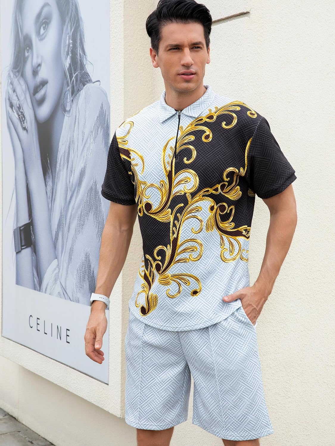 Men’s Short Sets Outfits 2 Piece Fashion Summer Clothing Men 1/4 Zip Golf Polo Shirt Men’s Casual Sportswear
