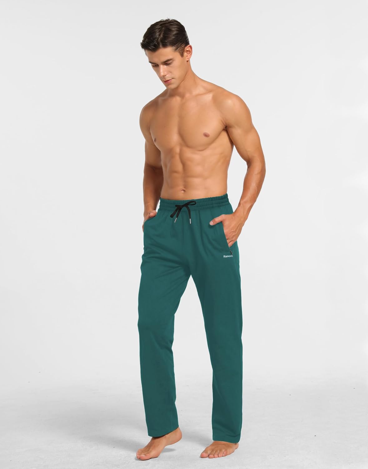 Men’s Sweatpants Cotton Yoga Pants Casual Jersey Pants for Men Open Bottom Straight Leg with Zipper Pockets